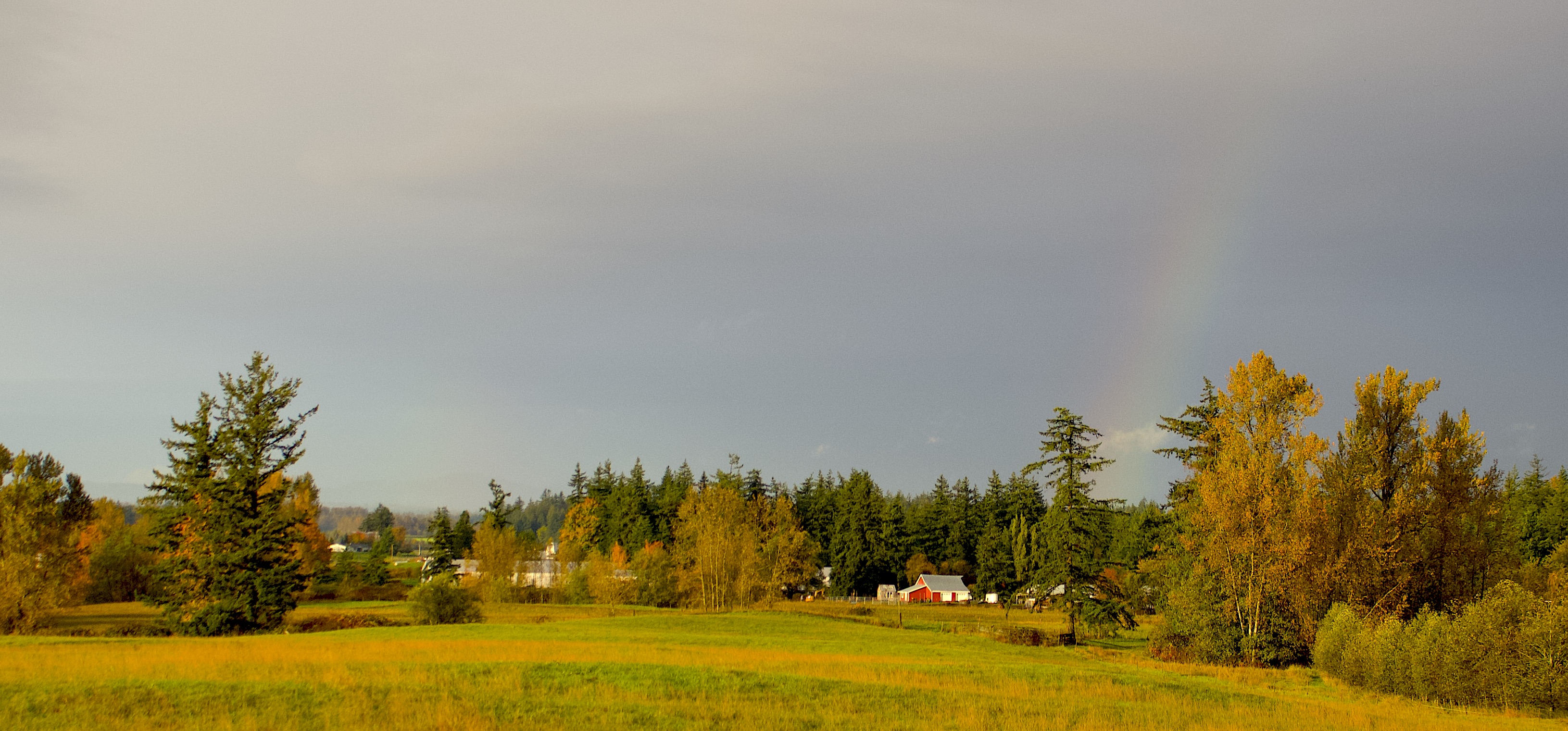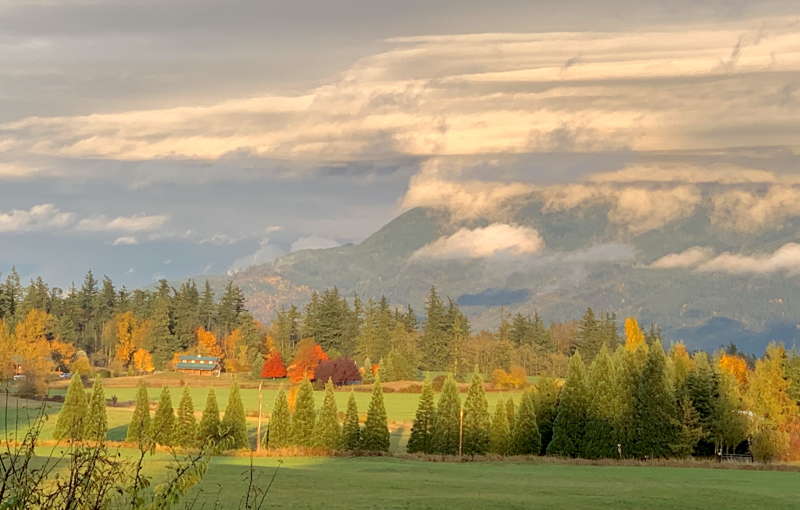 Mid-October dreary cloud-covered rain and wind.