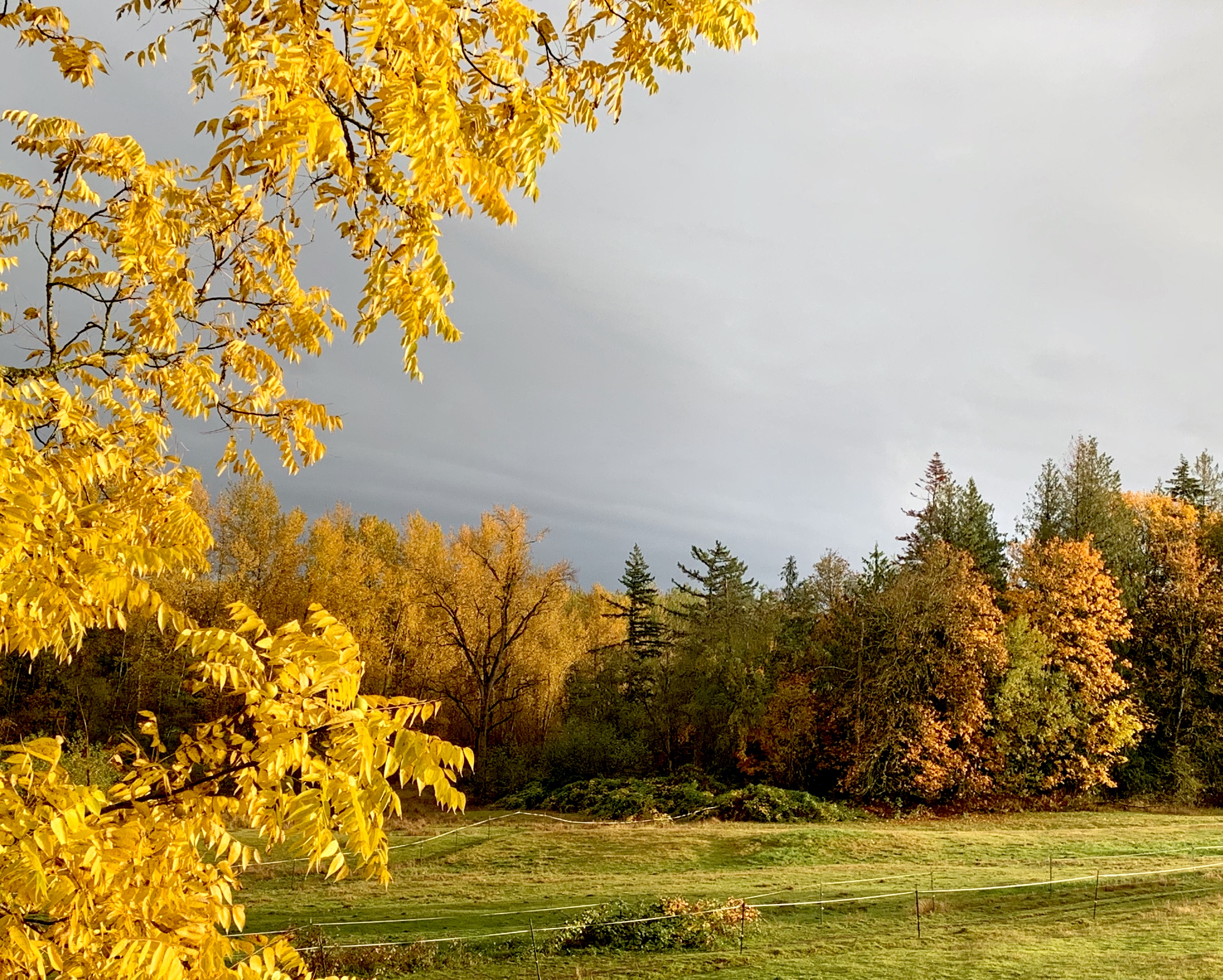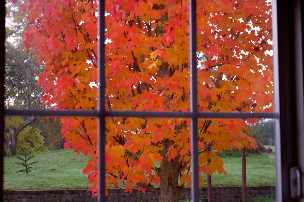 Mid-October and we’ve already had our first hard frost – the leaves turned almost overnight. They are letting go, swirling and swooping in the breezes and pittering to the ground like so many raindrops.