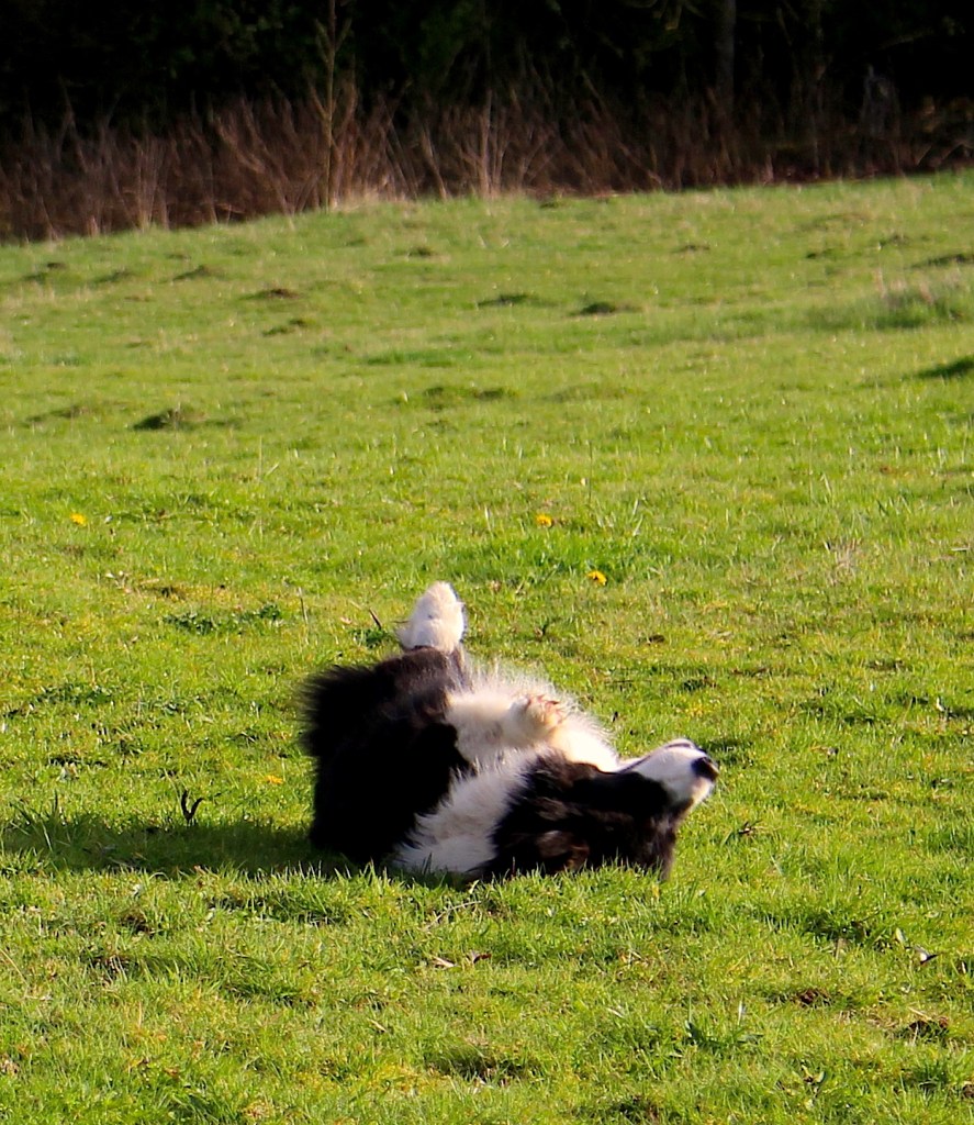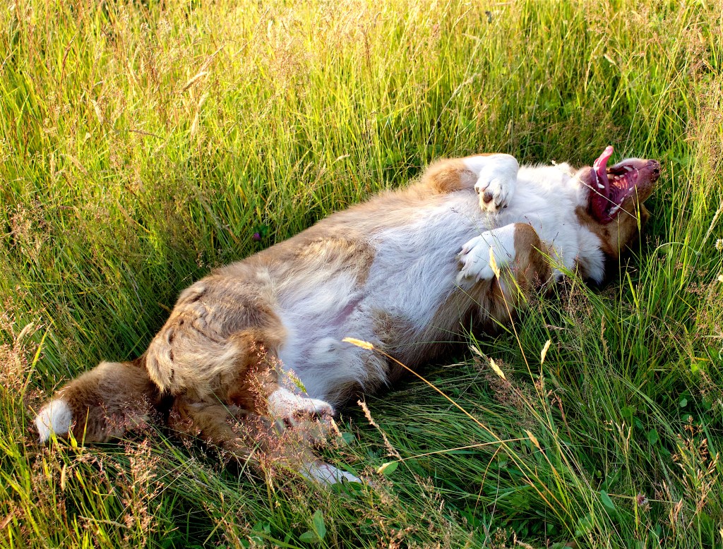 I have not written before about our dogs’ coprophagous grins (look it up). This is a family-friendly blog so I’m not using the colloquial term that might be used while we’re out in the barn. But grinning they are, with a muzzle full of manure.