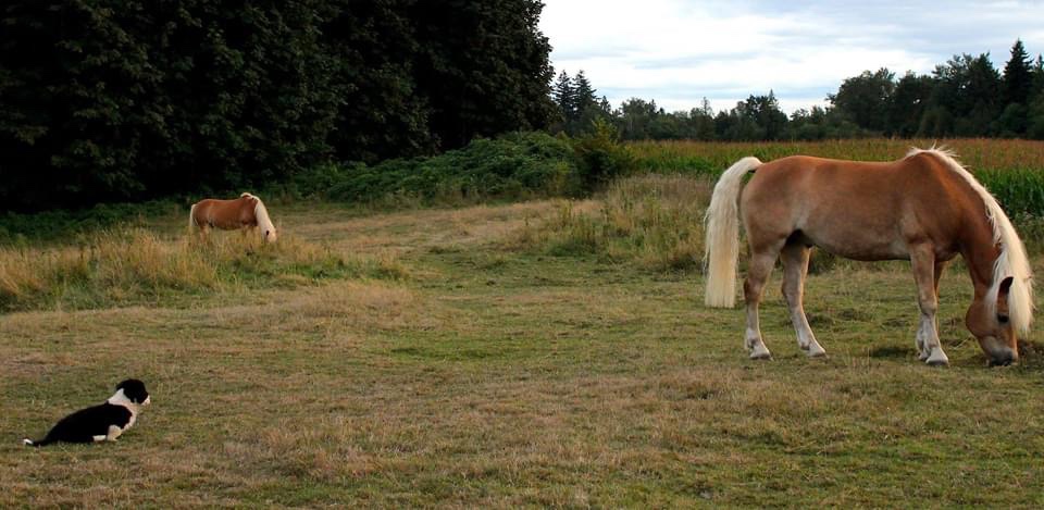 Dogs love to eat horse poop (among other things). No one has figured out why except that decomposing things – fecal, rotting or decaying- just simply smell good to a dog and what smells good must taste good. It does not smell good on their breath or, when they happily roll in it, on their fur. But they don’t seem to mind stinking to high heaven as long as it is their choice. What consenting dogs do should not concern us, right?