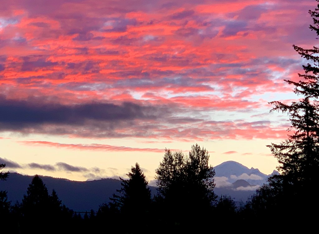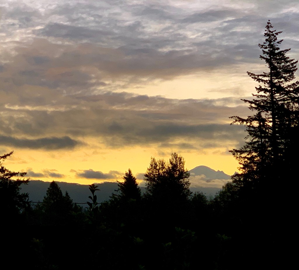 I brought these images back with me to remember my moment of awestruck witness. The photographic image isn’t the real mountain, it isn’t even the pristine perfect reflection. Yet it means I was privileged to watch the mountain watching me back, welcoming me home.