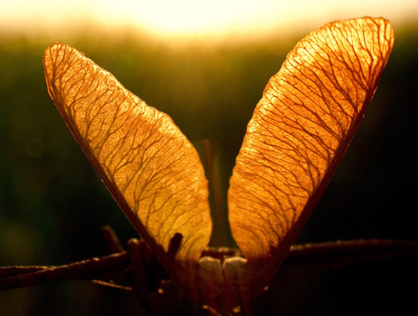 All at once I saw what looked like a Martian spaceship whirling towards me in the air. It flashed borrowed light like a propeller. Its forward motion greatly outran its fall. As I watched, transfixed, it rose, just before it would have touched a thistle, and hovered pirouetting in one spot, then twirled on and finally came to rest. I found it in the grass; it was a maple key, a single winged seed from a pair. Hullo. I threw it into the wind and it flew off again, bristling with animate purpose, not like a thing dropped or windblown, pushed by the witless winds of convection currents hauling round the world’s rondure where they must, but like a creature muscled and vigorous, or a creature spread thin to that other wind, the wind of the spirit which bloweth where it listeth, lighting, and raising up, and easing down. O maple key, I thought, I must confess I thought, o welcome, cheers.