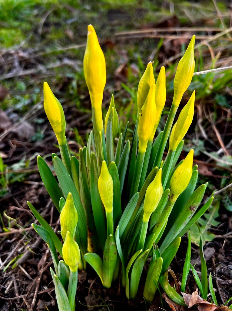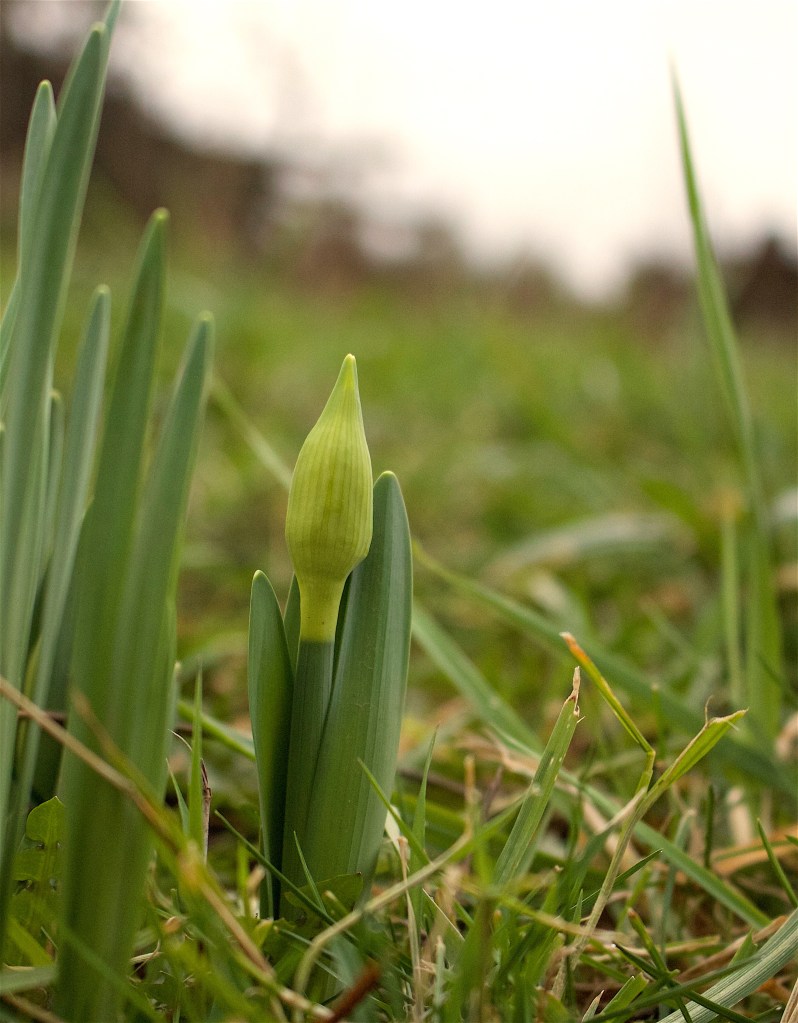 Once the daffodils are blooming, they encourage my hope and a promise of the spring just ahead. When the blooms wither and fade, the green spiky stems must gather the strength the bulb needs for another cycle of dormancy, so I mow around them to allow as much time as needed to replenish before disappearing underground again.