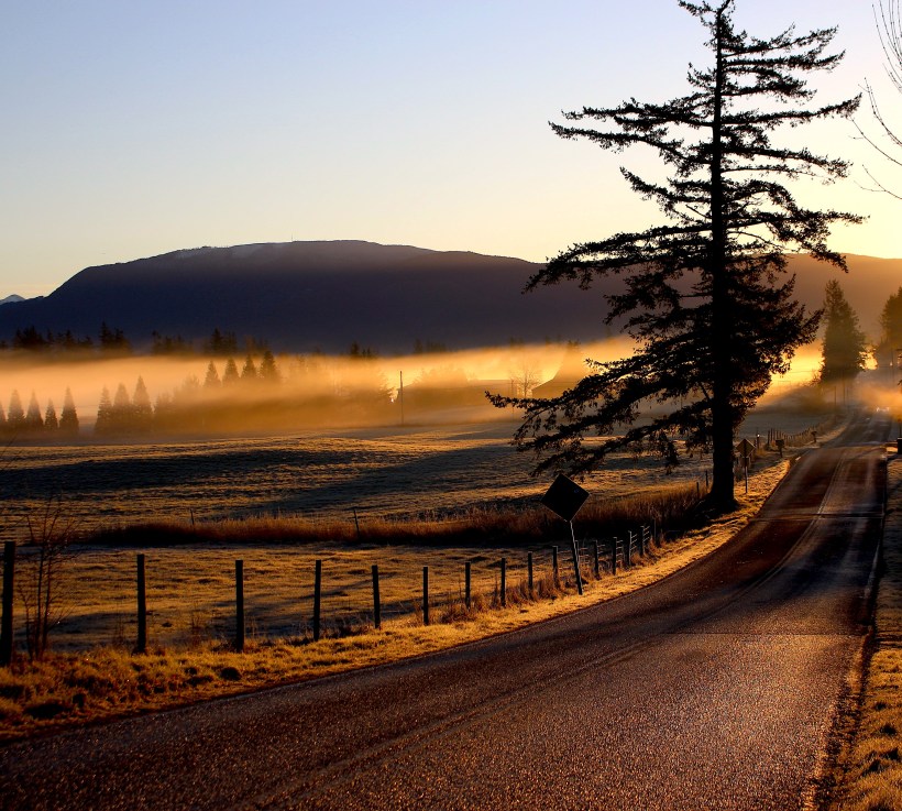 along a wooded highway
