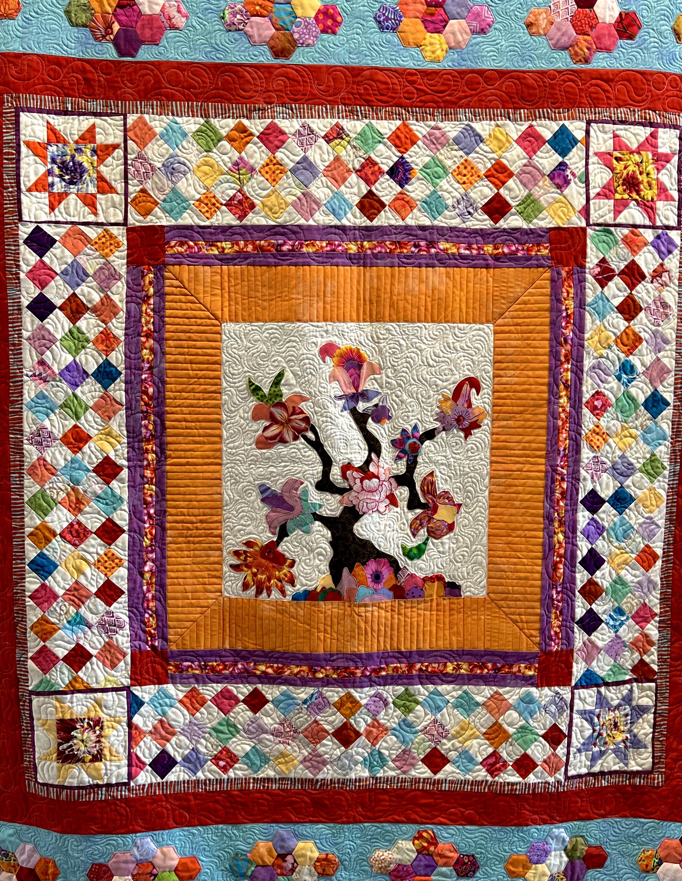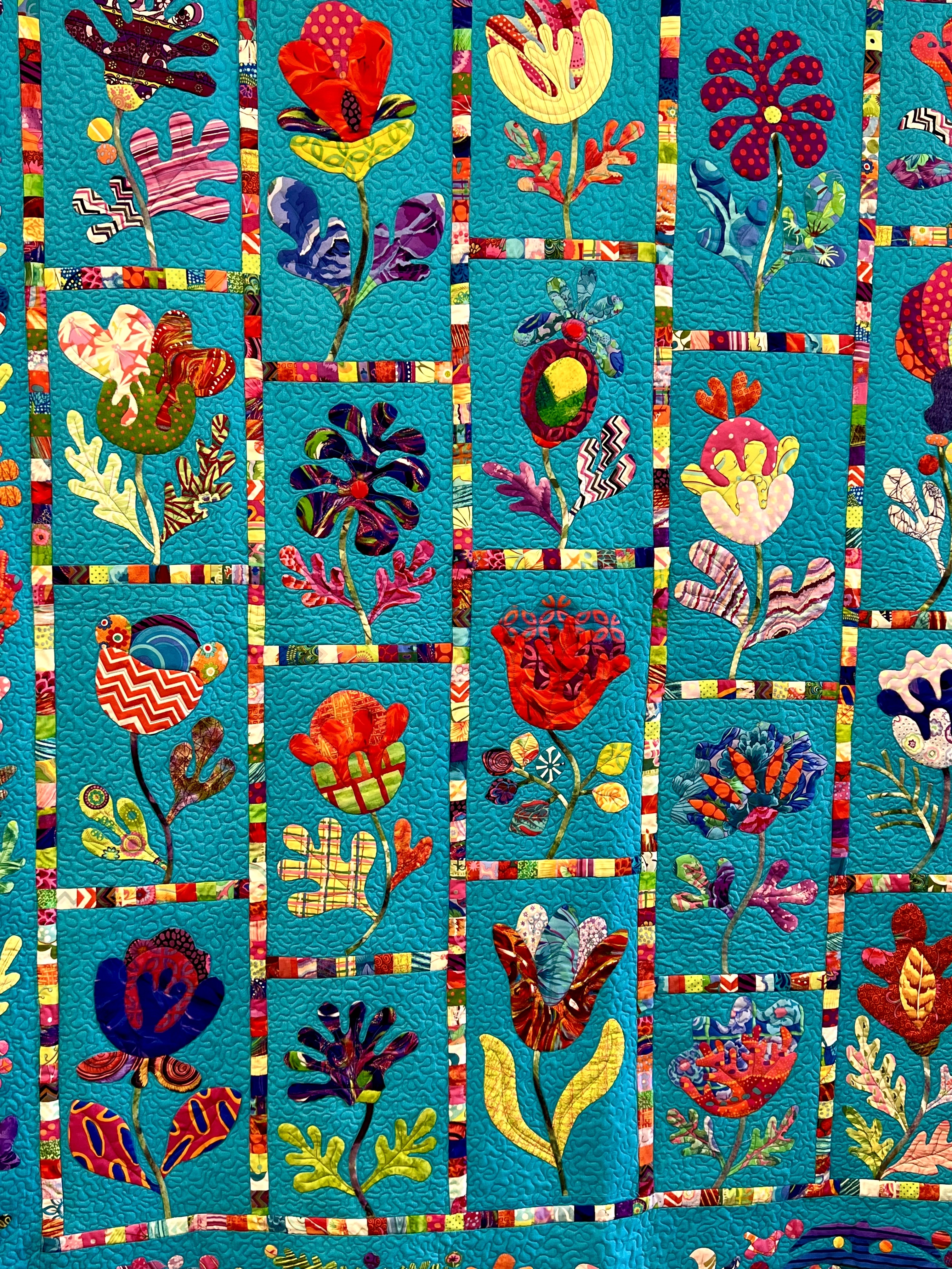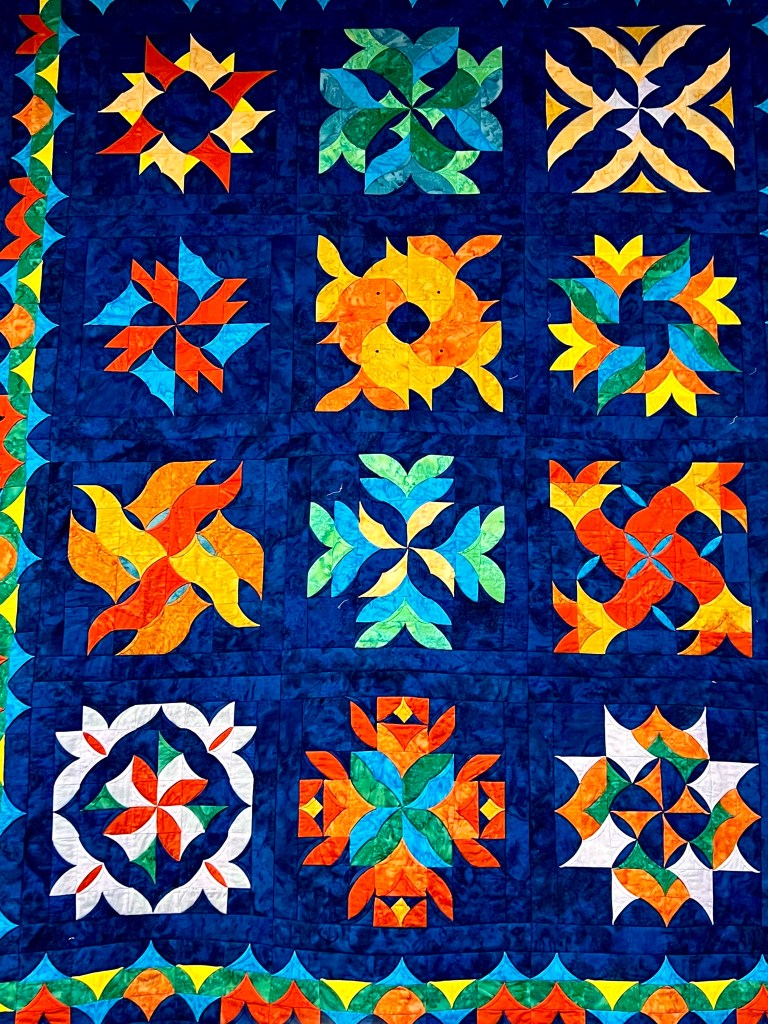 Full of warmth and beauty and fun covering all who sleep and love and cuddle, or in their frailty may drift off to heaven on a quilt-cloud as their last breath is breathed.