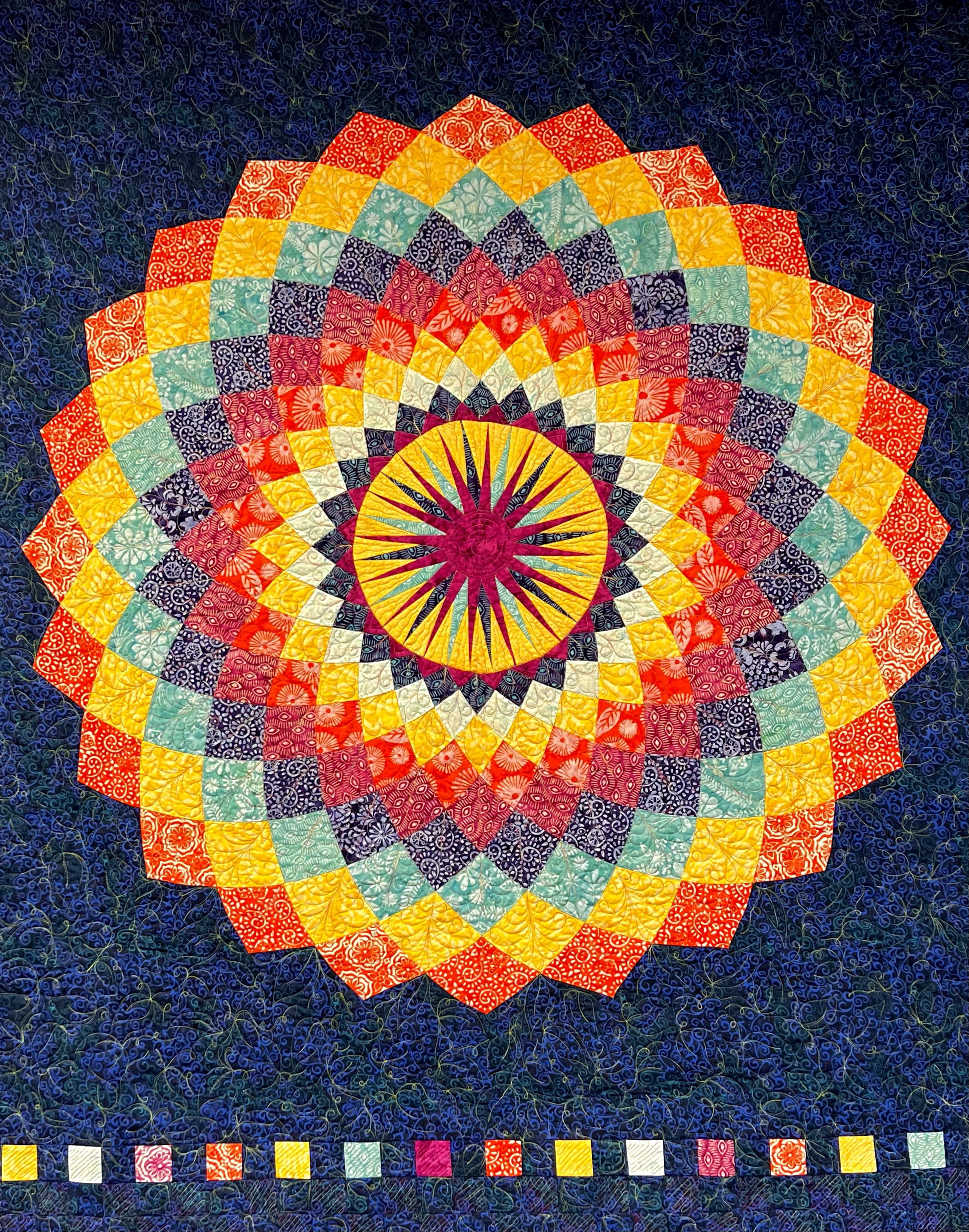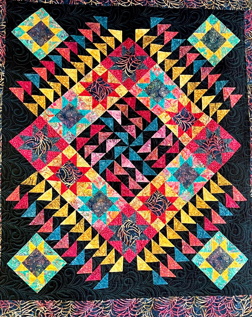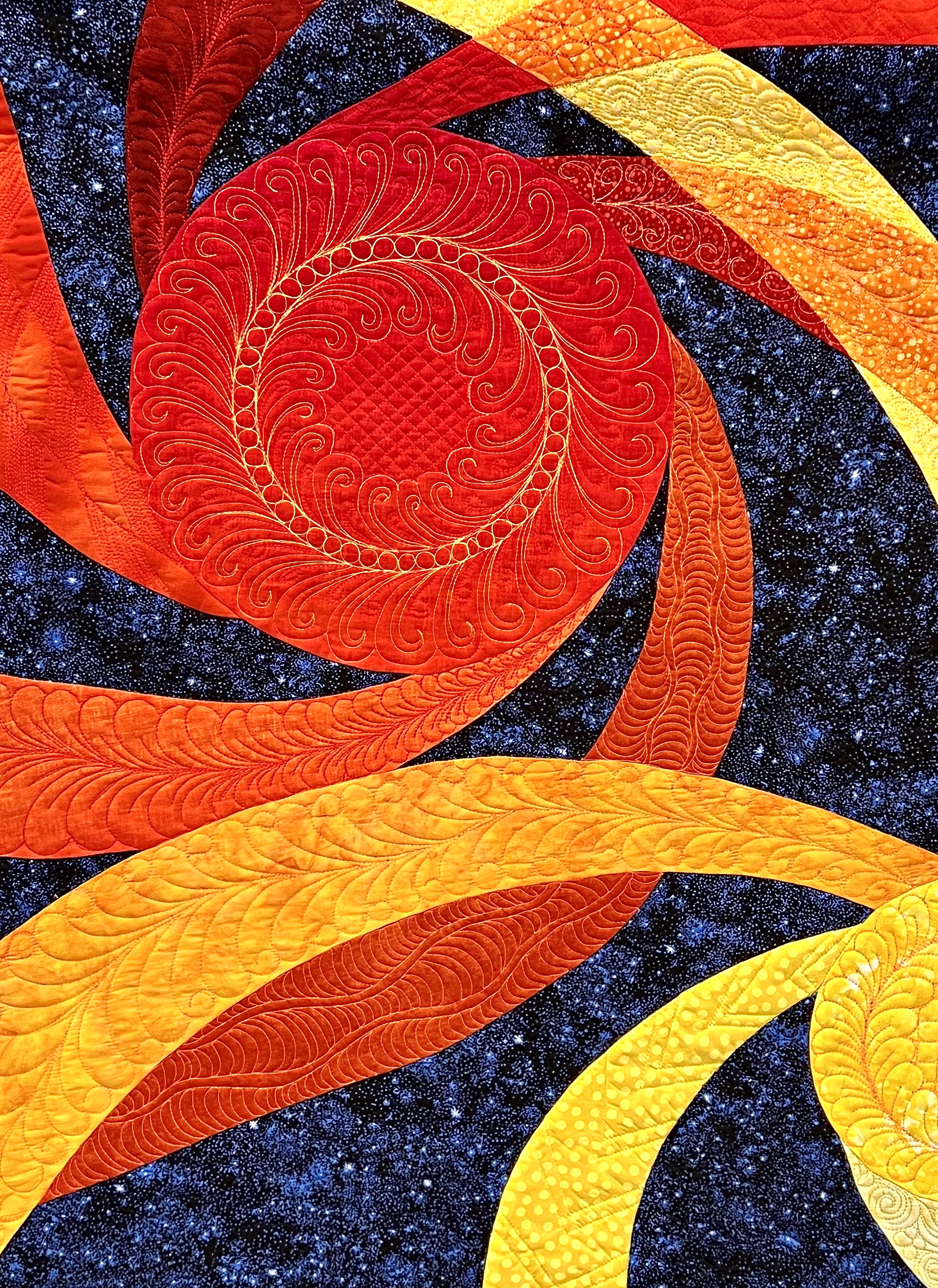 Full of warmth and beauty and fun covering all who sleep and love and cuddle, or in their frailty may drift off to heaven on a quilt-cloud as their last breath is breathed.