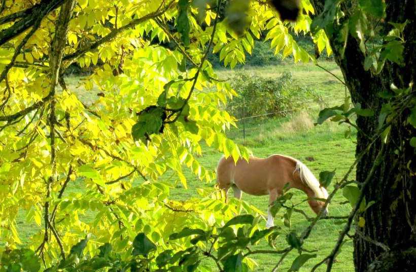I set to work picking what I could reach, snagging, ripping and bloodying my hands and arms, despite my sleeves. Pretty soon I had mares on either side of me, diving into the brambles and reaching up to pick what they could reach as well, unconcerned about the thorns that tore at their sides and muzzles. They were like sharks in bloody water–completely focused on their prey and amazingly skilled at