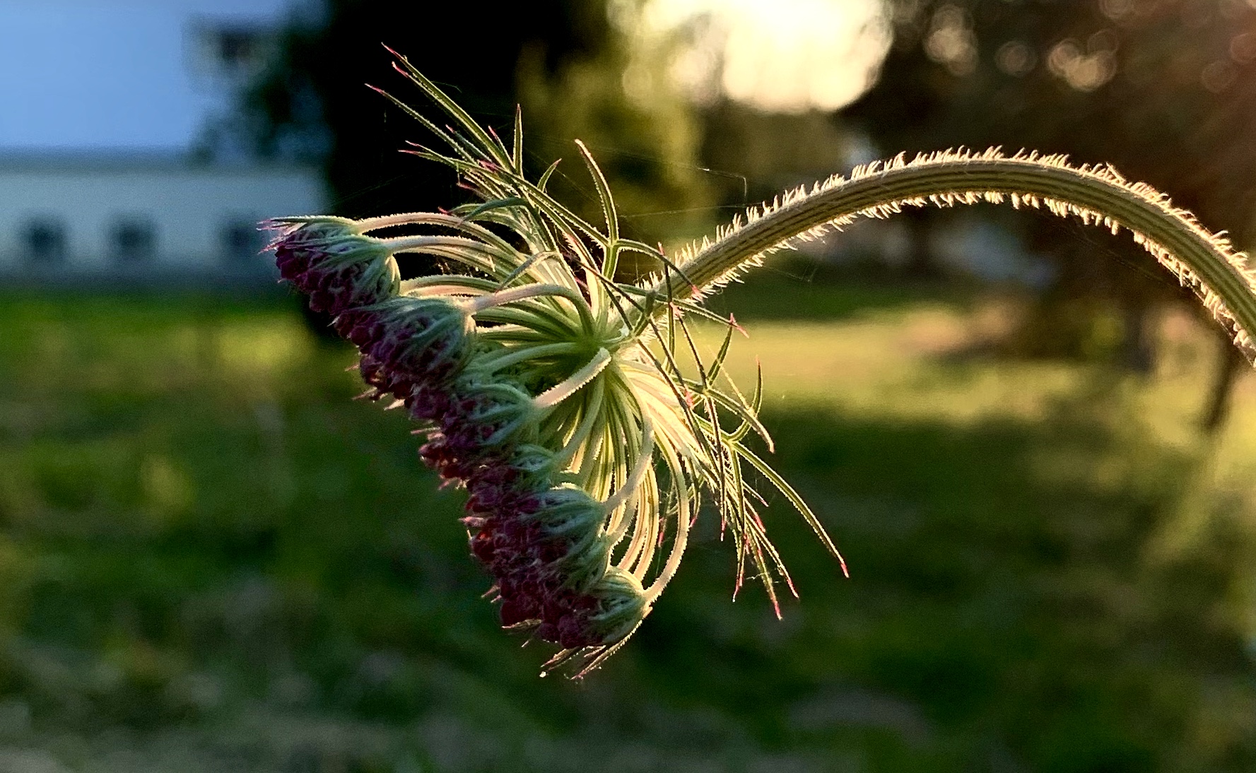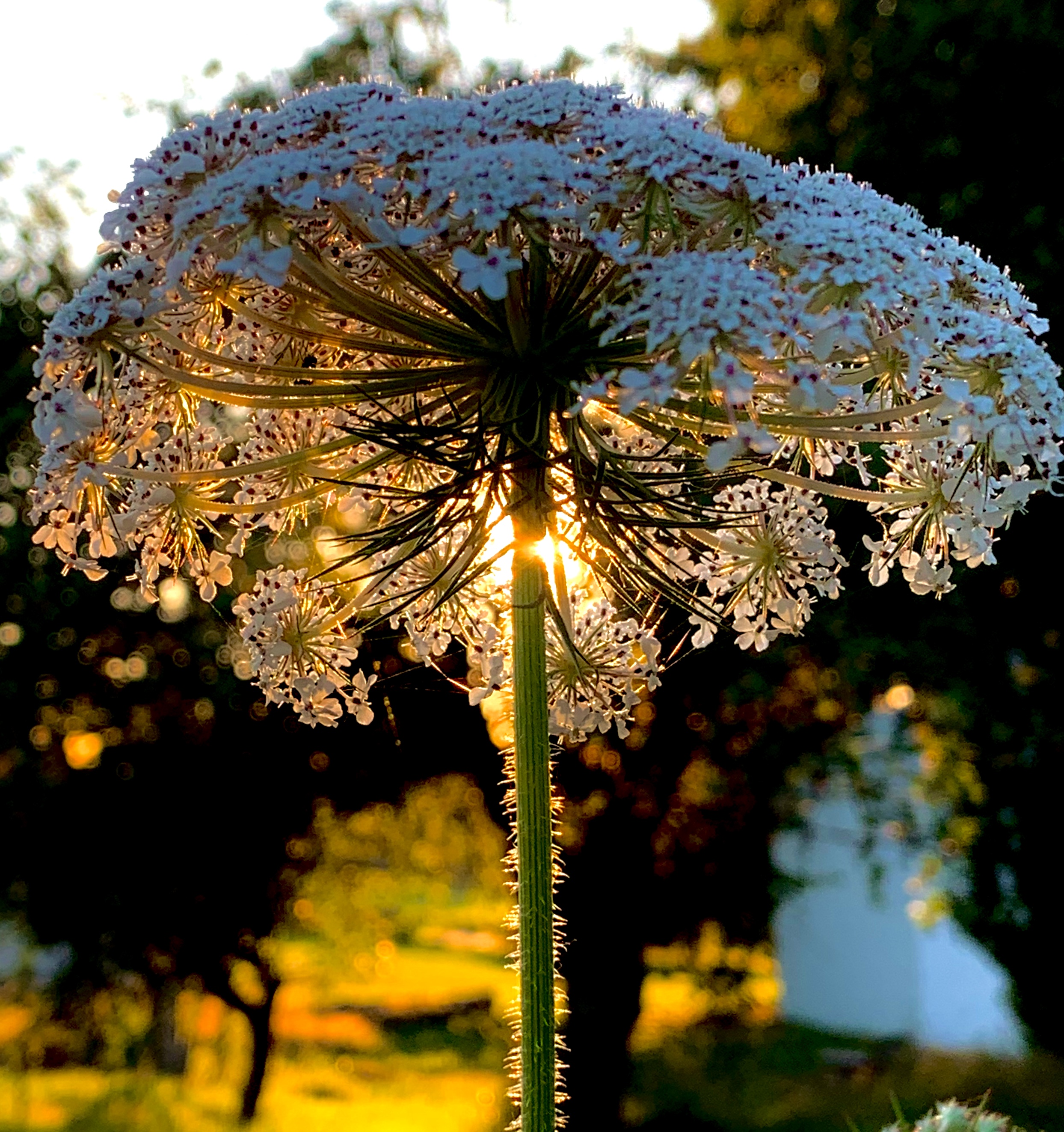 One wading a Fall meadow finds on all sides The Queen Anne’s Lace lying like lilies On water; it glides So from the walker, it turns Dry grass to a lake, as the slightest shade of you Valleys my mind in fabulous blue Lucernes.
