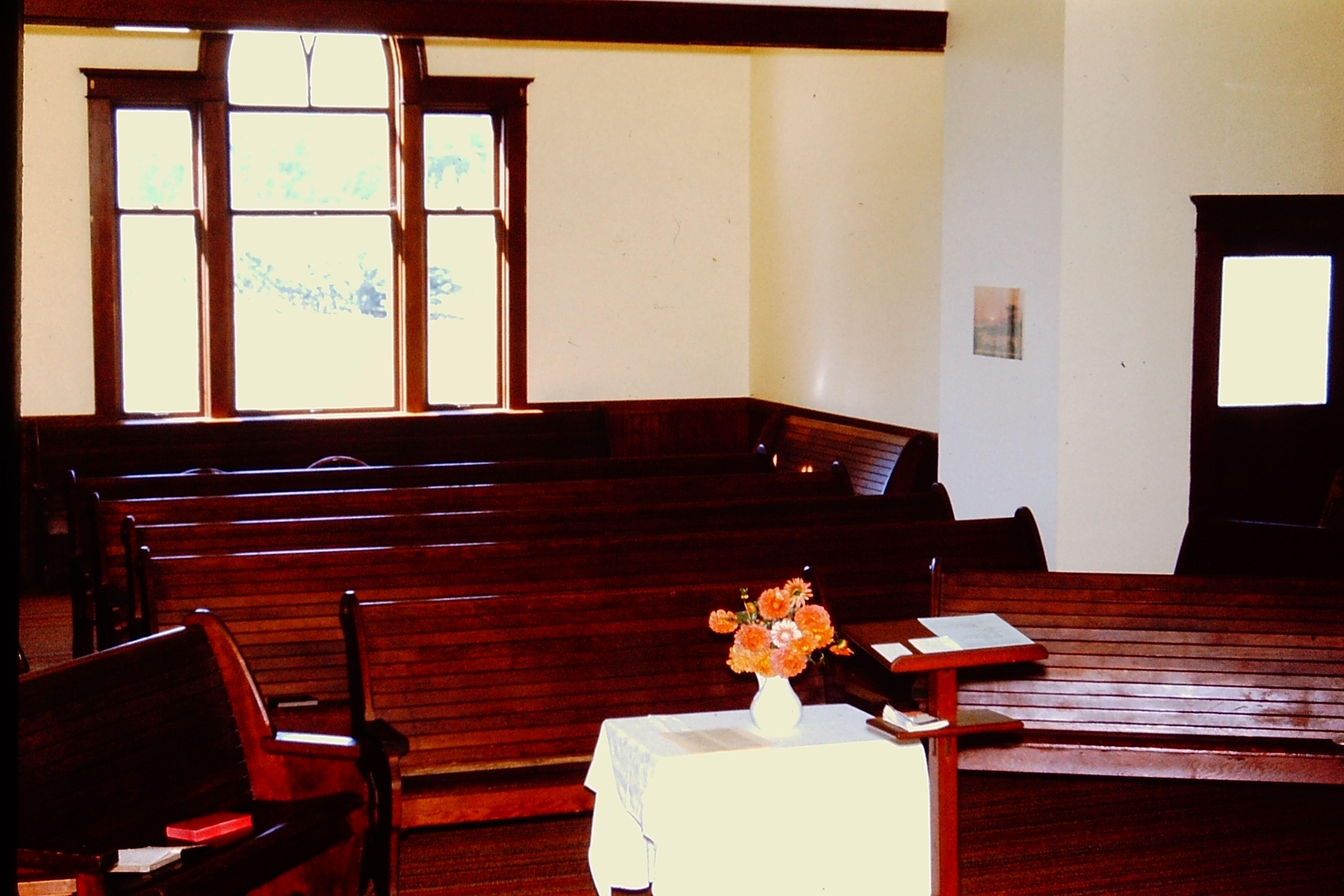 The church knelt heavy above us as we attended Sunday School, circled by age group and hunkered on little wood folding chairs where we gave our nickels, said our verses, heard the stories, sang the solid, swinging songs.