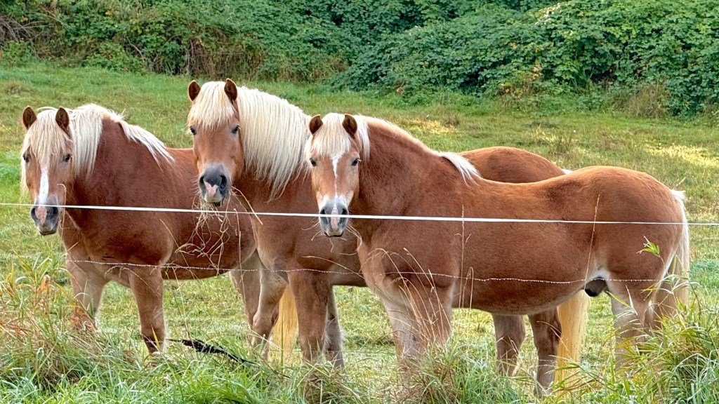 Each horse is content and a witness to peace, And I wish every person could know, Sadness and worry for a moment can cease, While patting noses down a stall row.