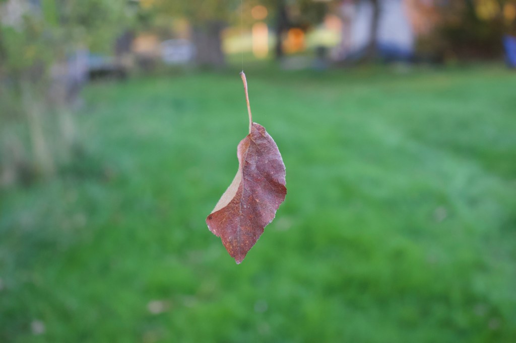 Watching a dry leaf twirl