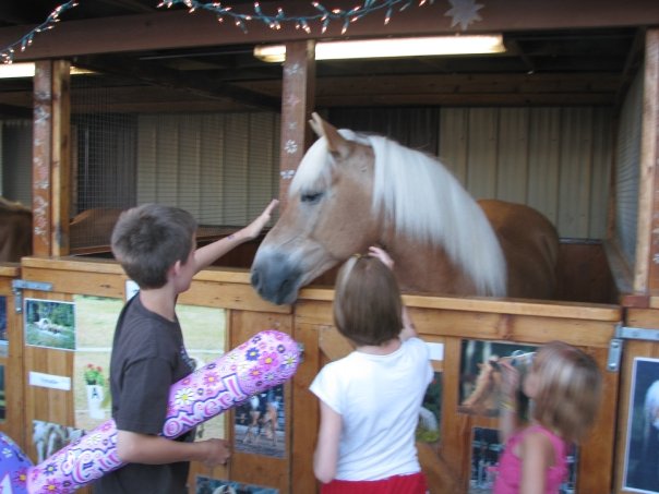 But now that our children are all grown up and moved away, all with children of their own, we lack their help to “man” the horse stalls. I miss spending that intense one week time with all of the several dozen “kid” helpers from over the years, all grown up and scattered to the winds.