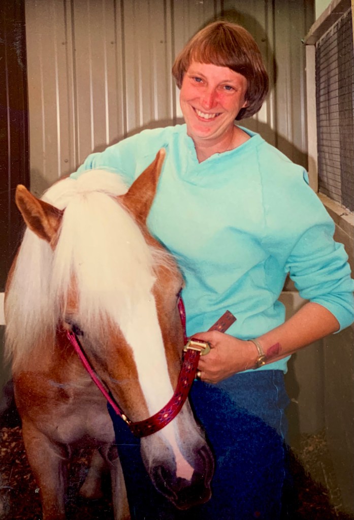 Our farm, BriarCroft, had been a consistent presence at this fair for nearly two decades, promoting the Haflinger breed in a well-decorated outdoor display, providing 24 hour a day coverage for the horses for the 6 days of the fair. We petitioned the Fair Board for 5 years in the late 1980s to allow us to display at the fair, and they finally said “okay, here’s the space, build it yourself” and we did! We were not there for classes, competition, or ribbons. We were there because people enjoyed our Haflingers and we enjoyed the people.