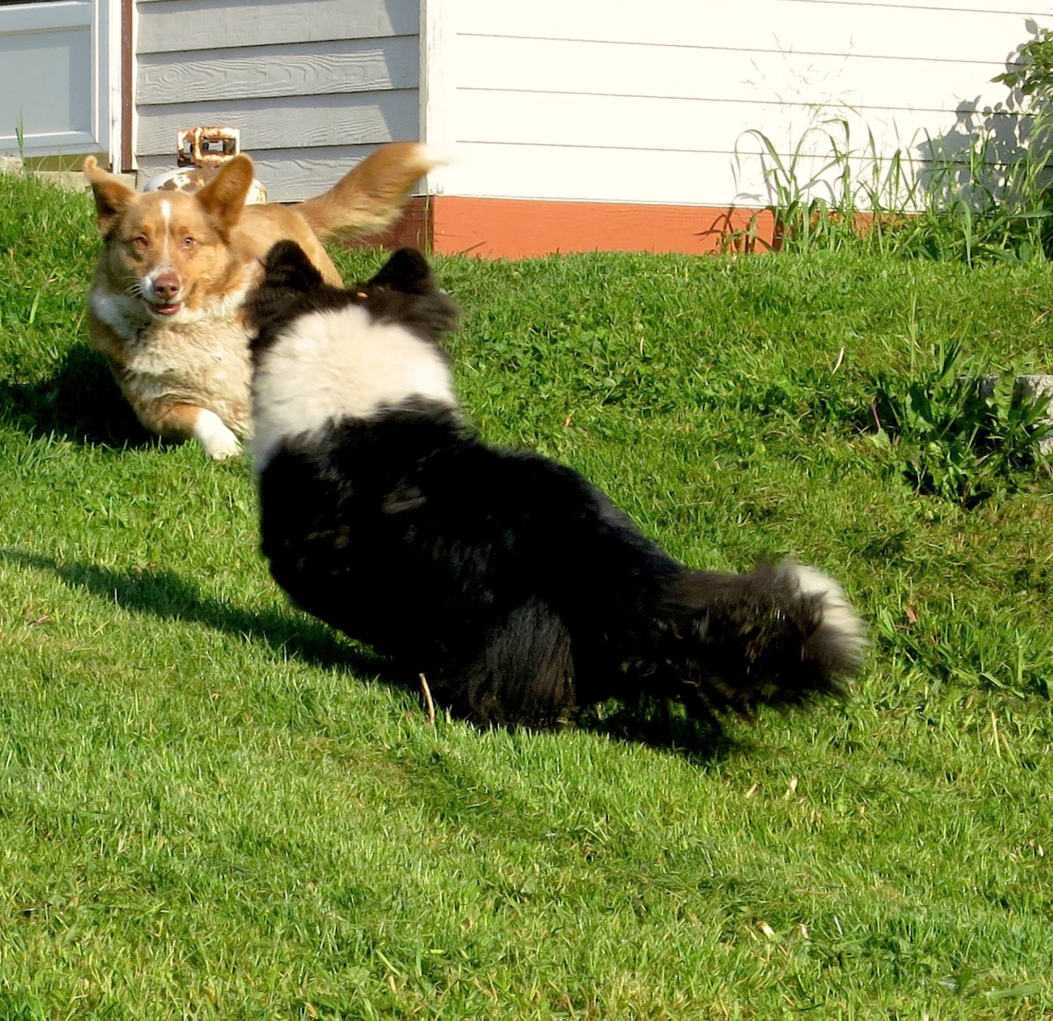 Like the game of chicken I watch my dogs play daily now, their eyes locked in mutual respect, intimidation and affection. They need one another for this game of love: give and take, take and give.
