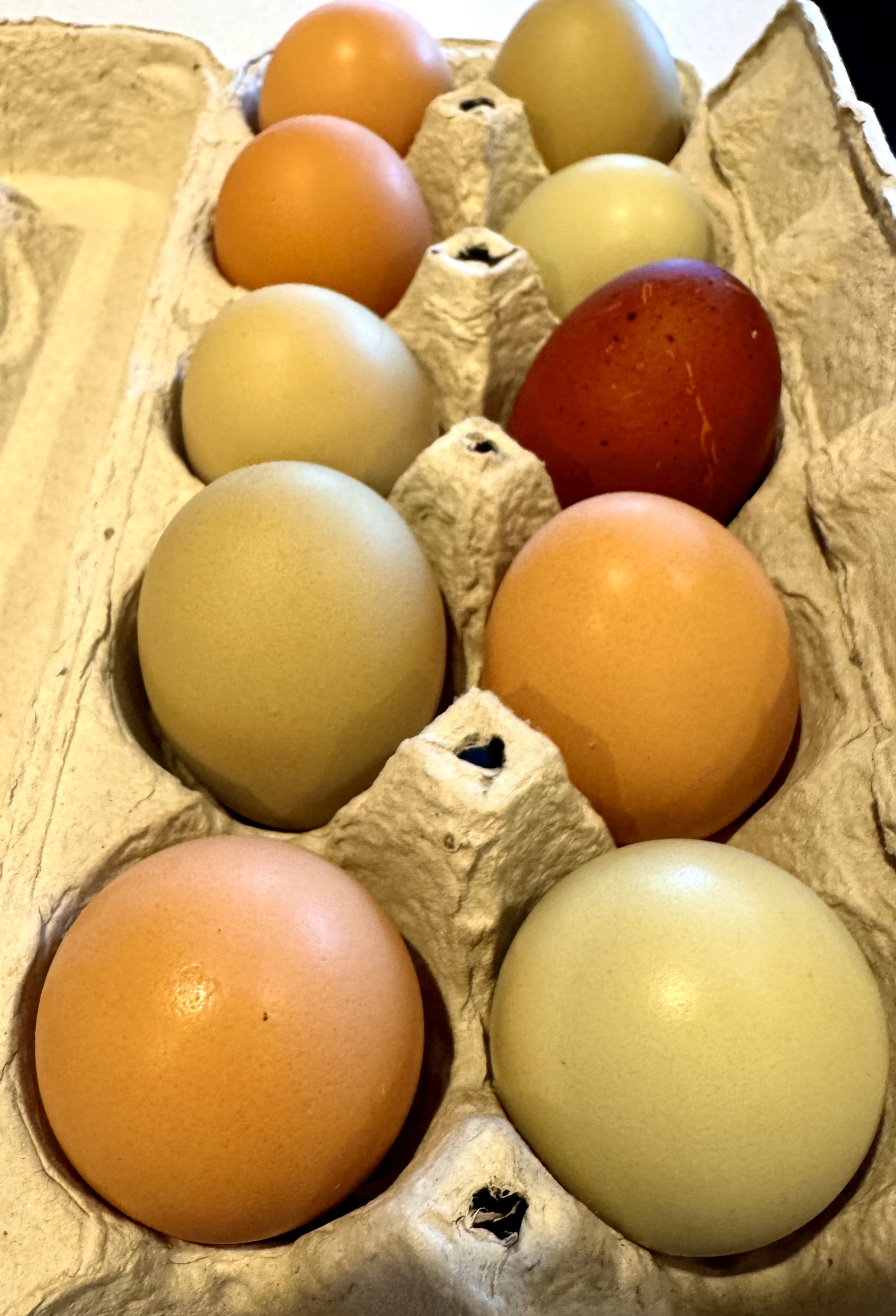 I’ve bonded with chickens since my birth, living in a farm house adjacent to a large chicken coop. I was taught to gather eggs at a very young age, learning to approach the hens respectfully and steathily, ignoring their scolding clucks as I reached under their feathered bellies to find a smooth warm treasure. Carrying eggs to the house was a great privilege, knowing what a delicious meal they would become. I became a grateful friend to those hens.