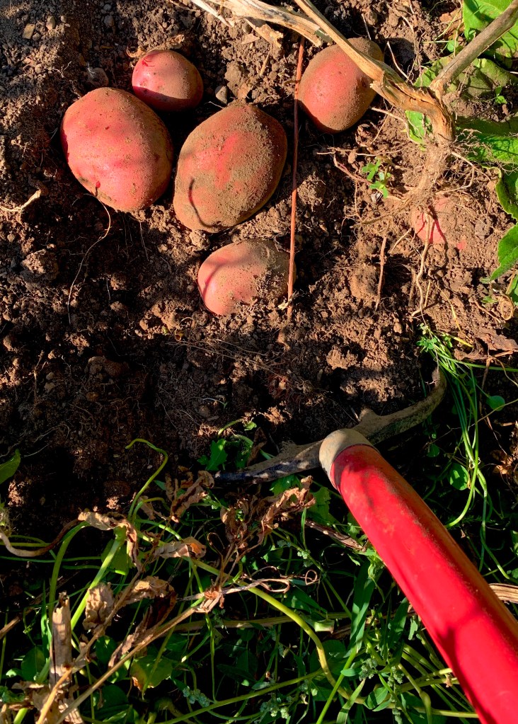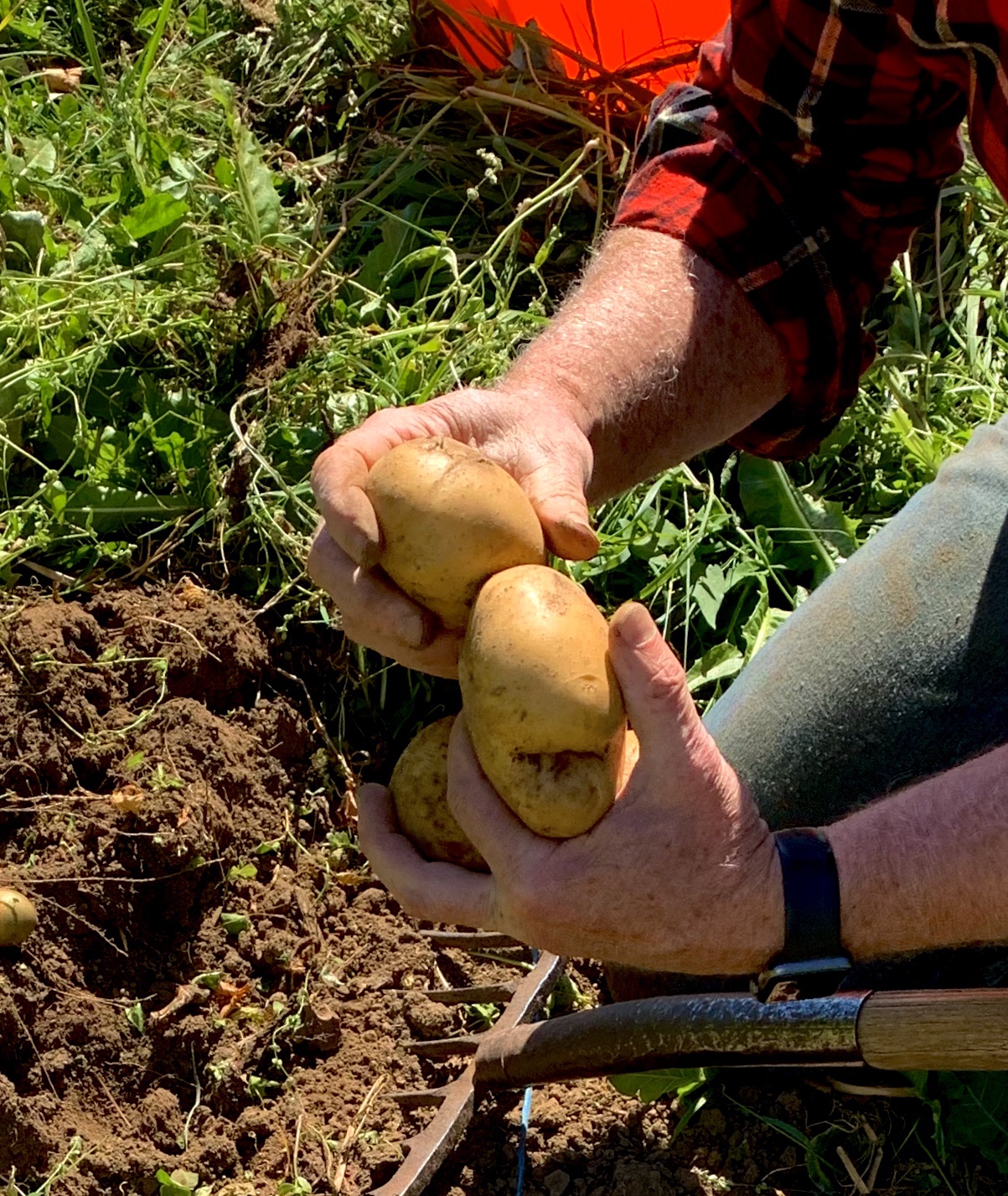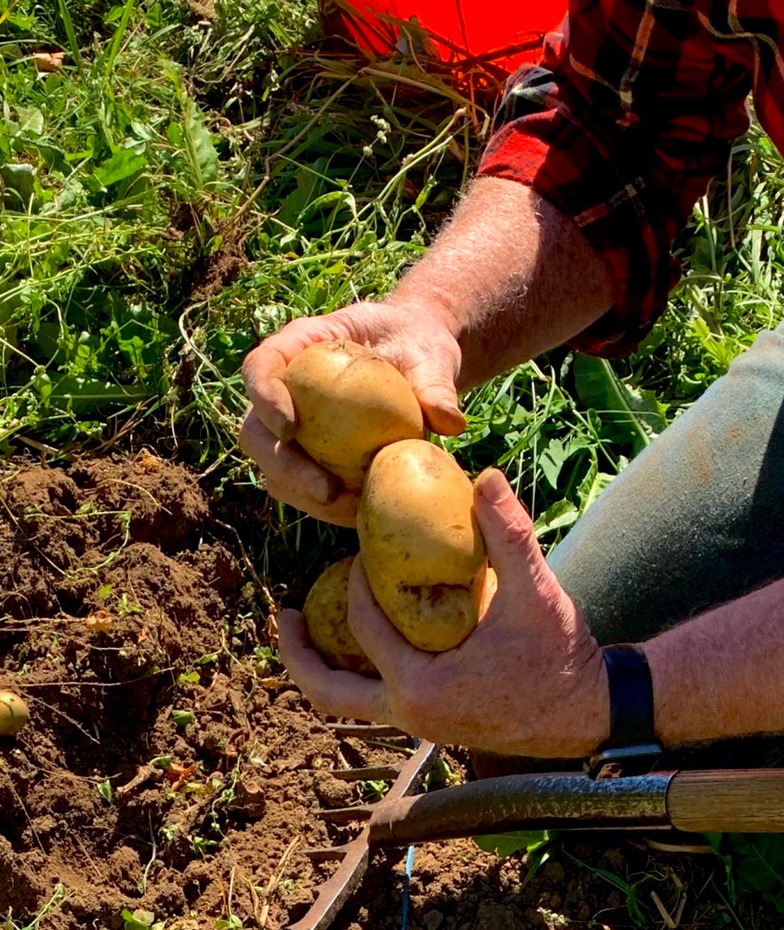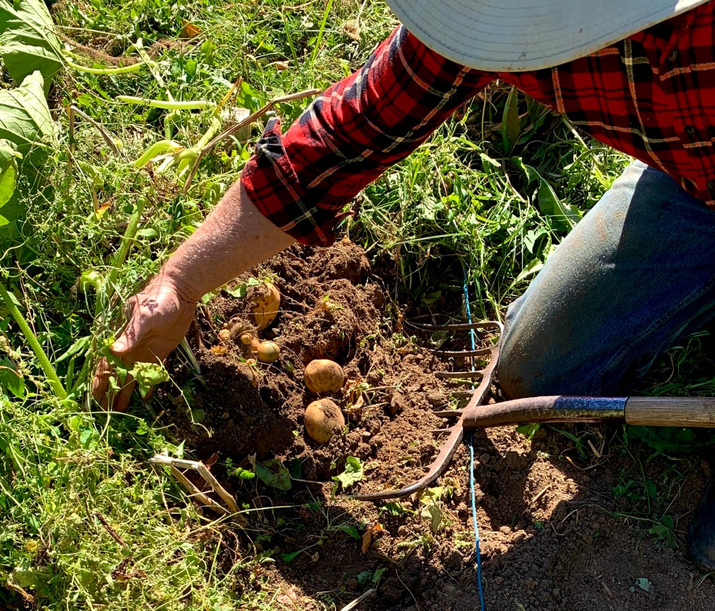 My father, digging. I look down