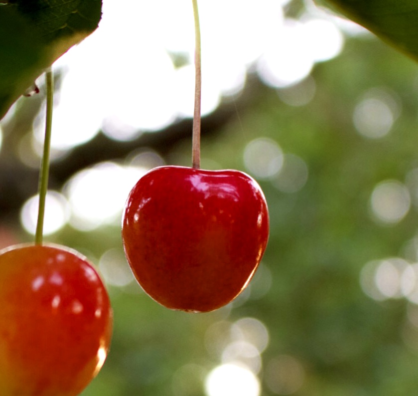 We used to pick cherries over the hill where we paid to climb wooden ladders into the bright haven above our heads, the fruit dangling earthward. Dark, twinned bells ringing in some good fortune just beyond our sight. I have lived on earth long enough to know good luck arrives only on its way to someone else, for it must leave you to the miracle of your own misfortune, lest you grow weary of harvest, of cherries falling from the crown of sky in mid-summer, of hours of idle. Let there be a stone of suffering. Let the fruit taste of sweetness and dust. Let grief split your heart so precisely you must hold, somehow, a memory of cherries— tart talismans of pleasure—in the rucksack of your soul. Taut skin, sharp blessing.