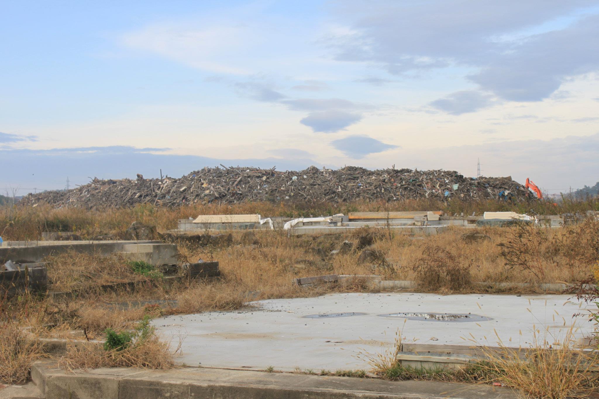 As we walked that stretch of beach, we heard the stories of the people who had lived there, some of whom did not survive the waves that swept their houses and cars away before they could escape. We walked past the footprints of foundations of hundreds of demolished homes, humbled by the rubble mountains yet to be hauled away a year later, to be burned or buried. There were acres of wrecked vehicles piled one on another, waiting to become scrap metal.