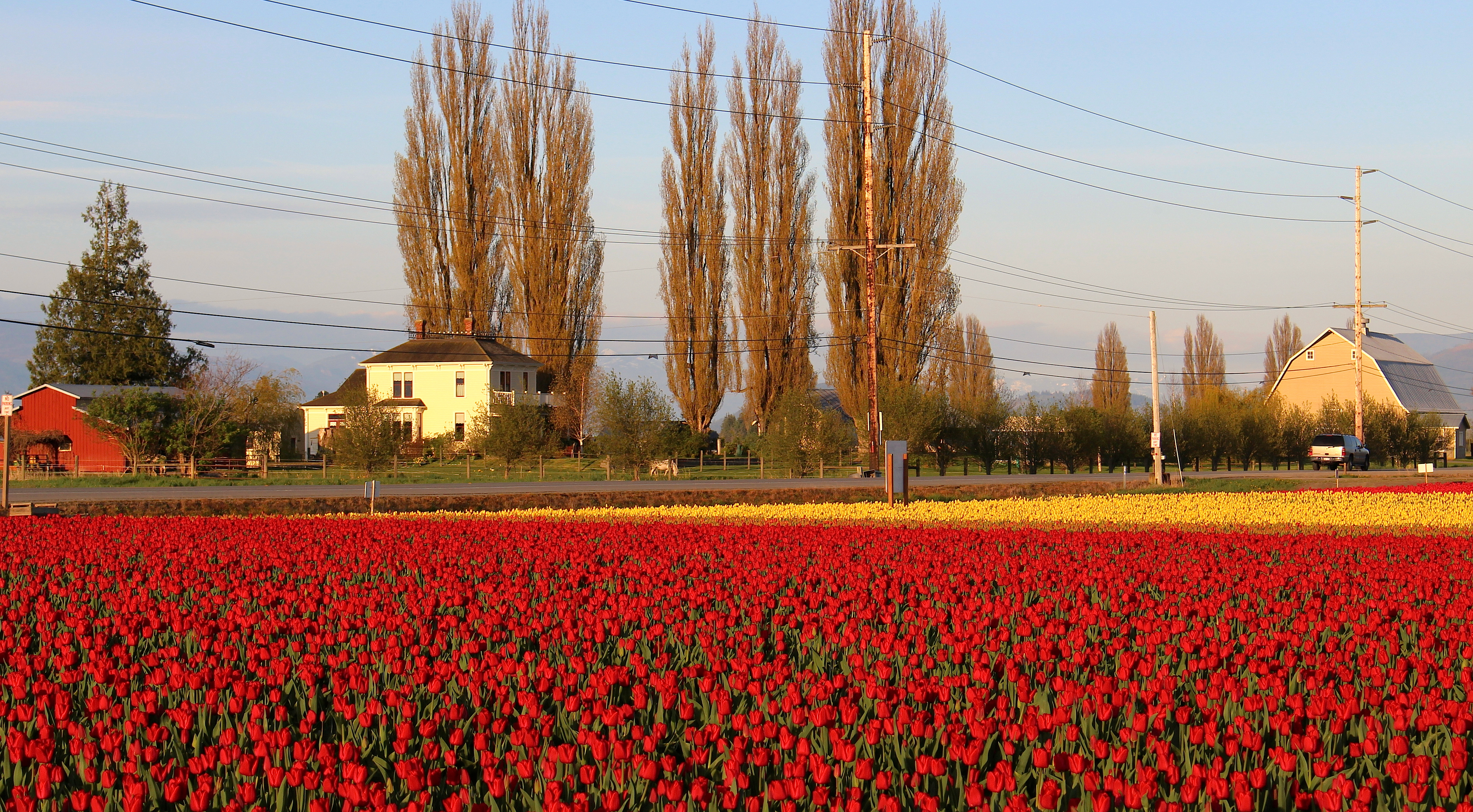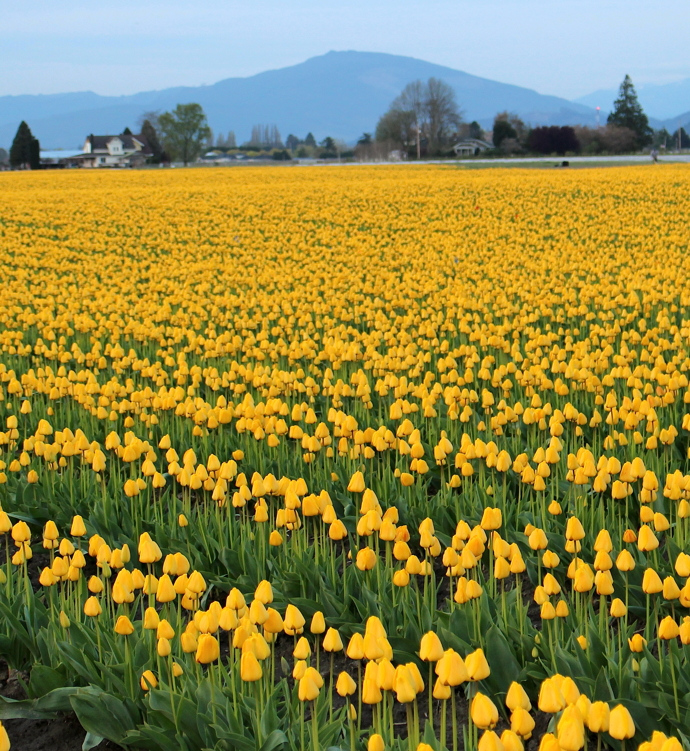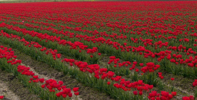 Perhaps there are places where spring blooms are reckless and shrieking in the night but the tulip fields in Skagit County, just south of where we live, is not one of them.