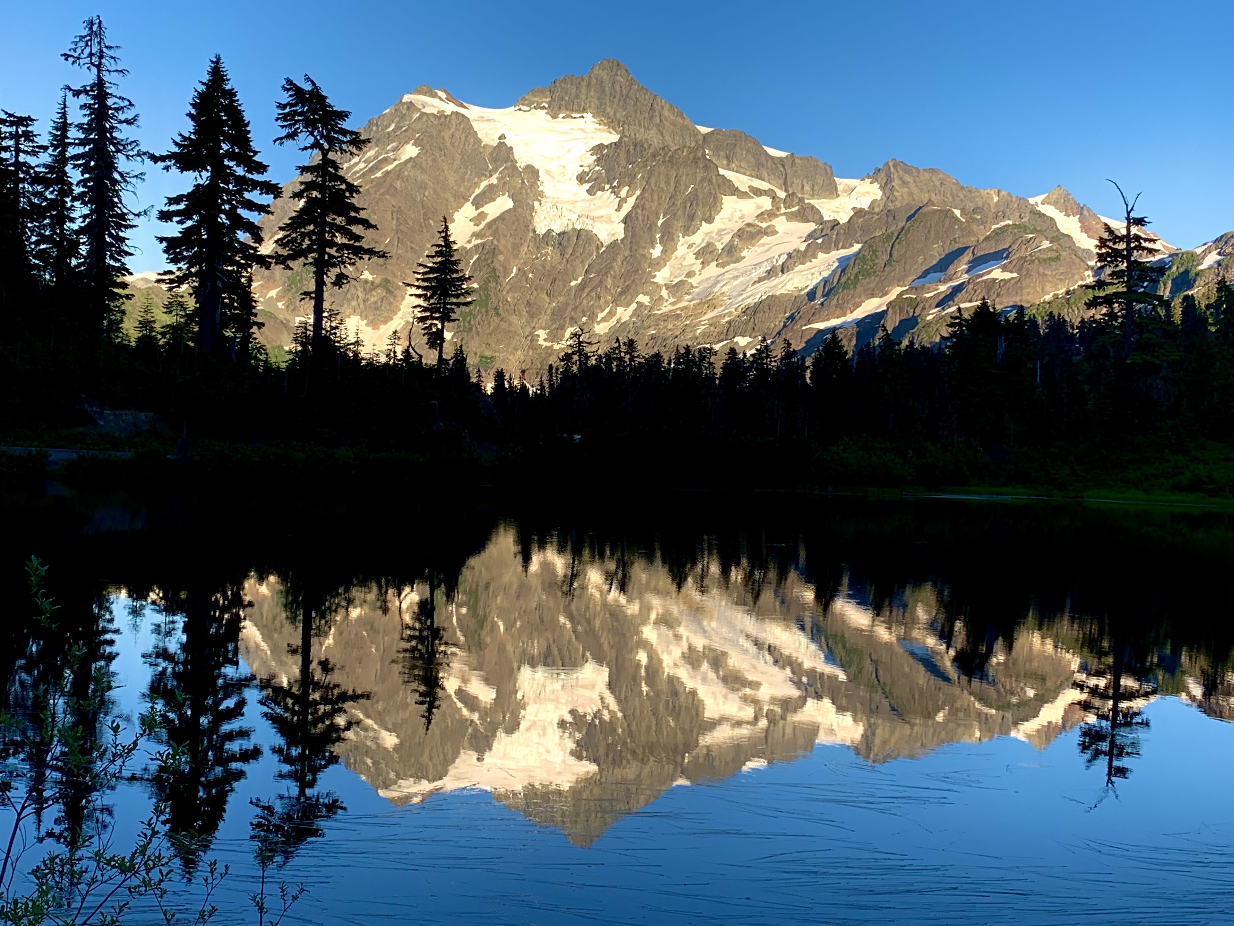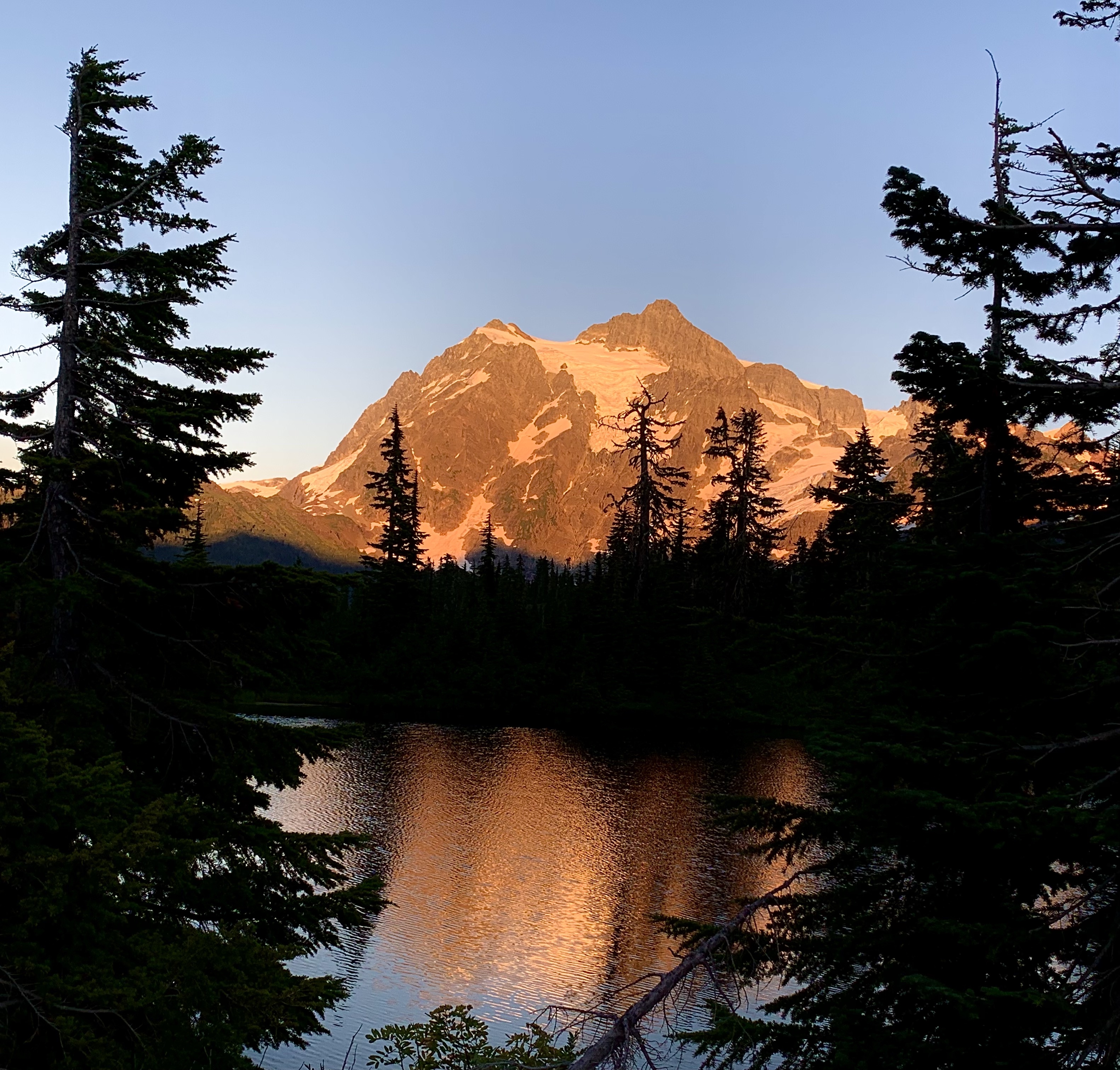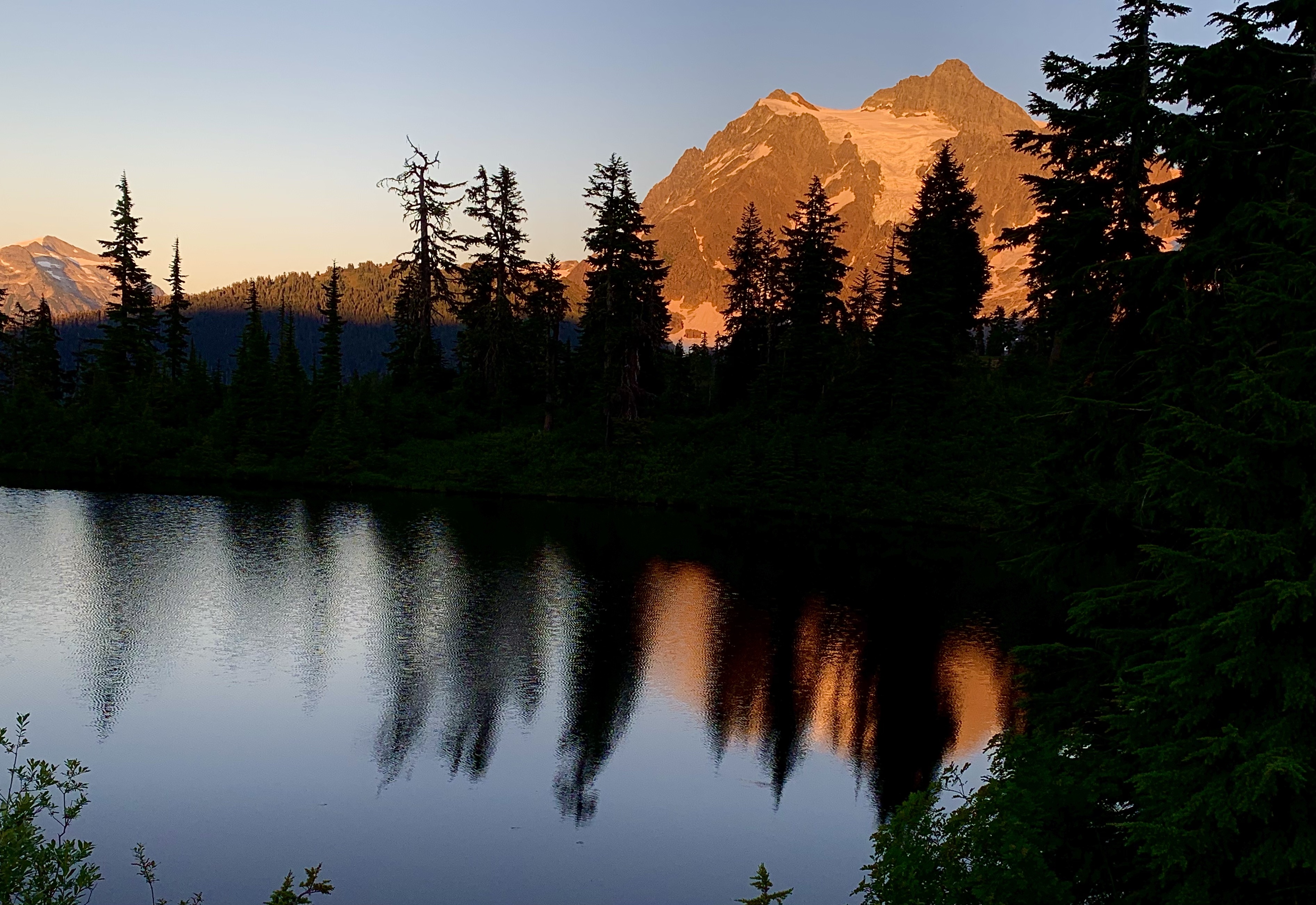 Dan and I headed up the Mt. Baker Highway yesterday evening to see how bare Baker and Shuksan look up close. We wonder what snow will be left before our typical precipitation begins in earnest in early October. These seemingly unchanging monoliths are being stripped of their usual garments, now naked and vulnerable. They are subject to God’s transforming power just as surely as we are.