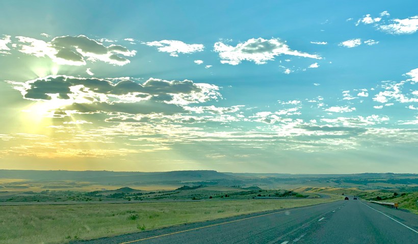 Outside, morning sun buckling up.