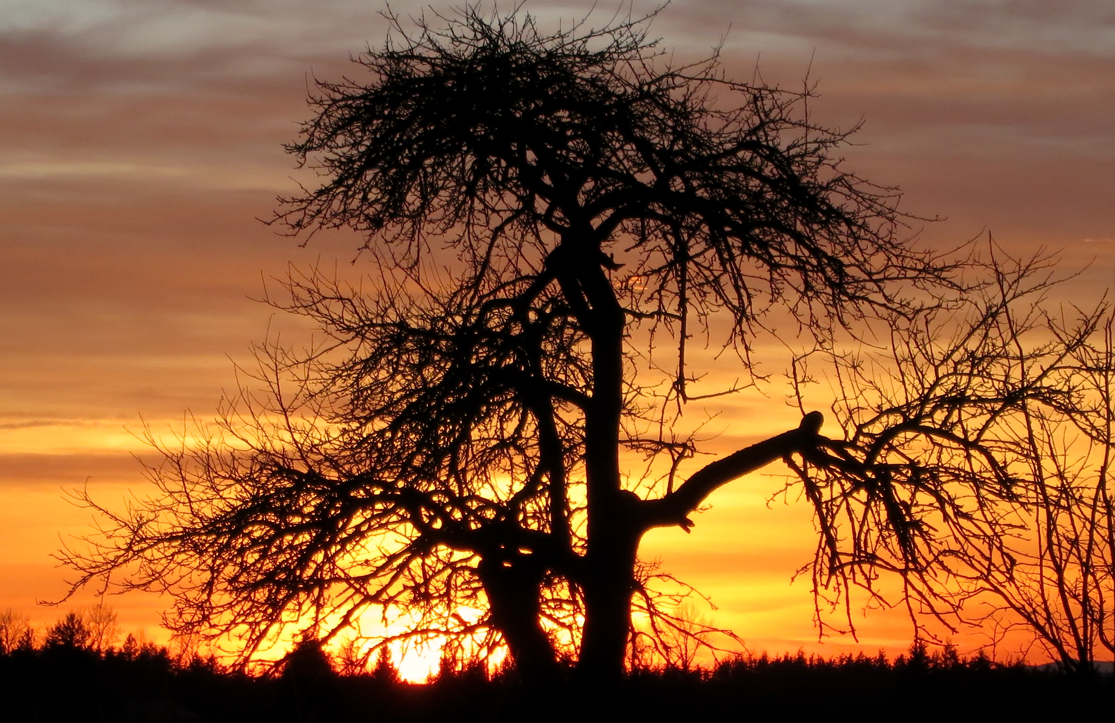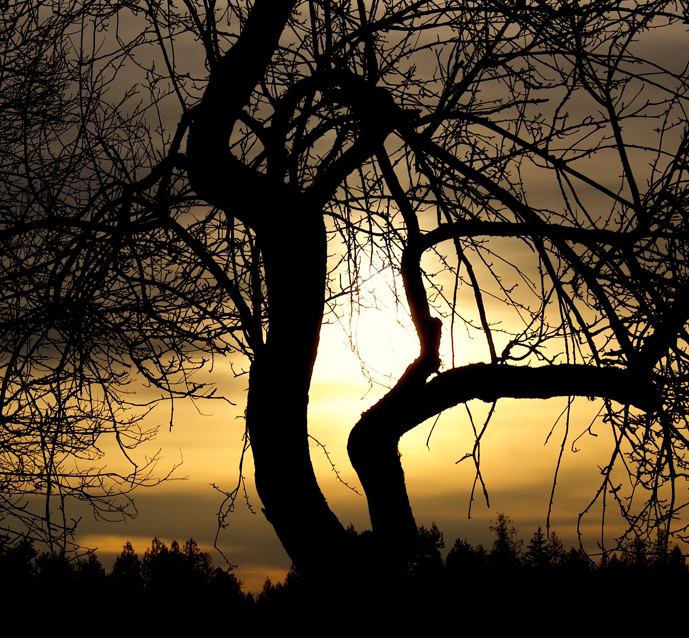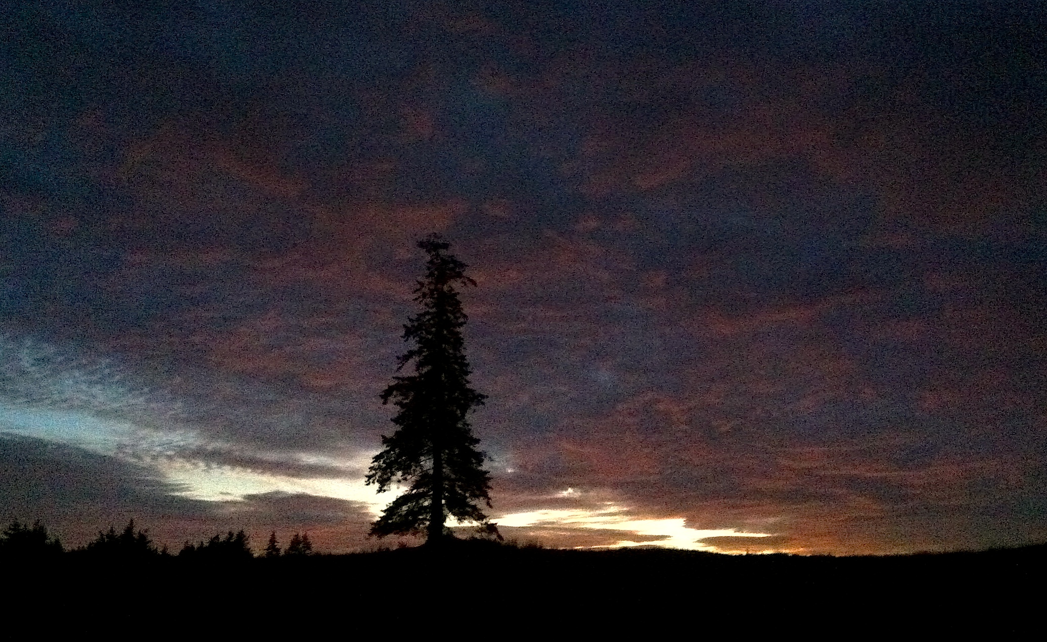 A tree on our hill broods over us