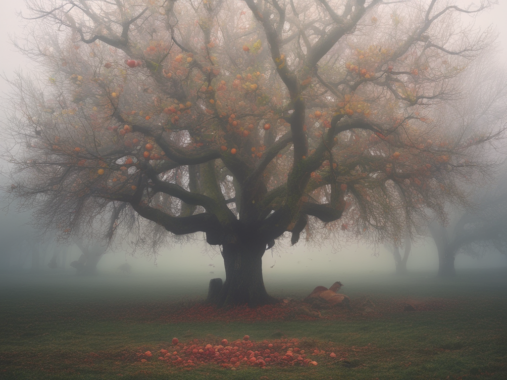 A heavy rain darkened a sodden gray dawn when suddenly unbidden, gusts ripped loose remaining leaves and sent them spinning, swirling earthbound in yellow clouds.