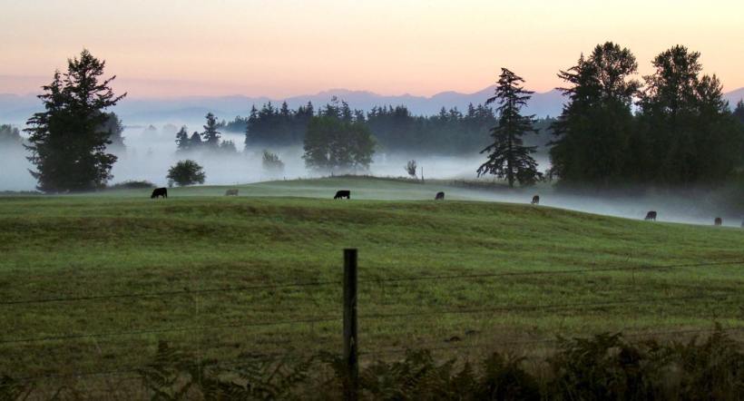 of mountain-dark, among farms