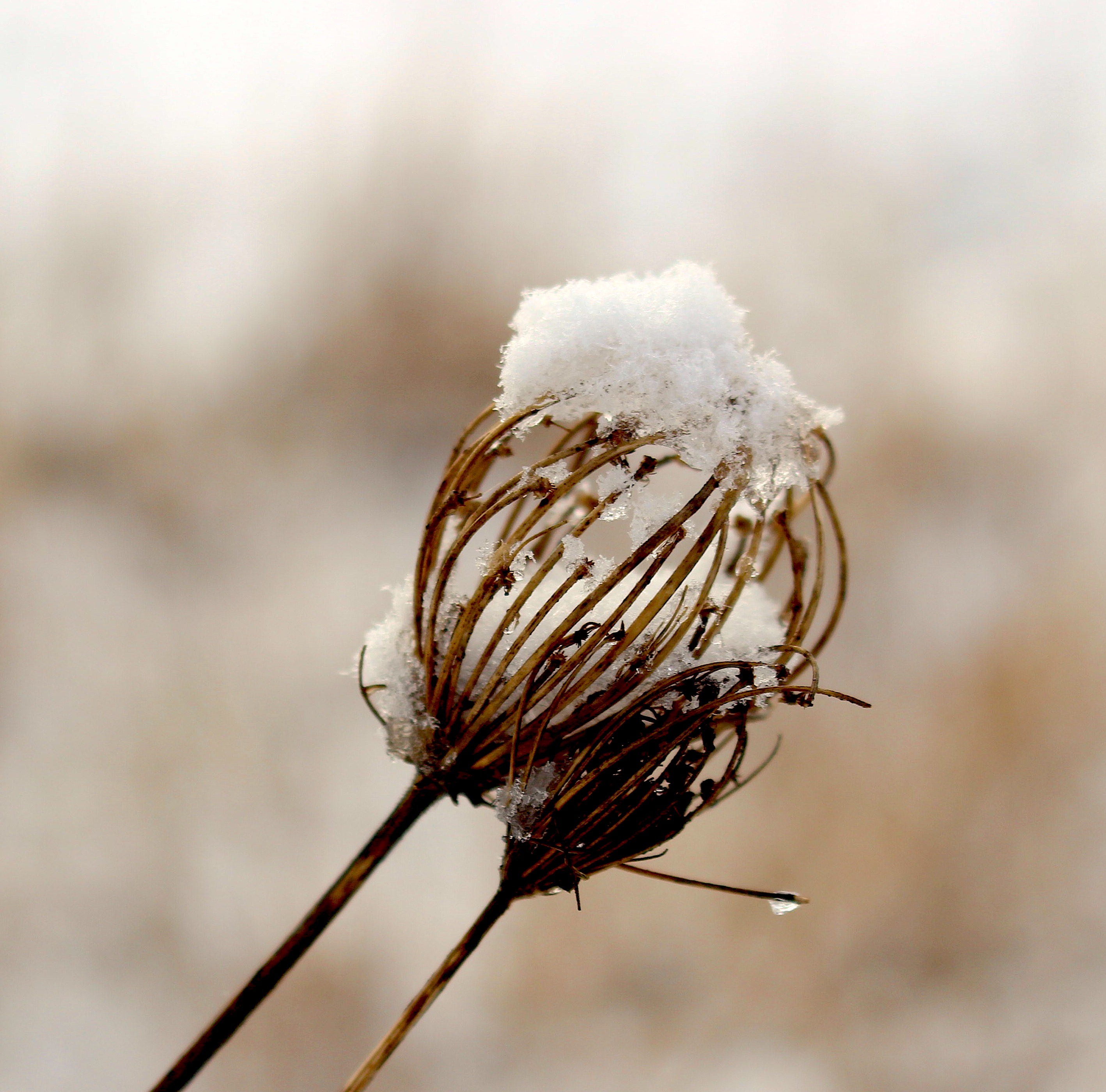 Nothing but white–the air, the light; only one brown milkweed pod bobbing in the gully, smallest brown boat on the immense tide.