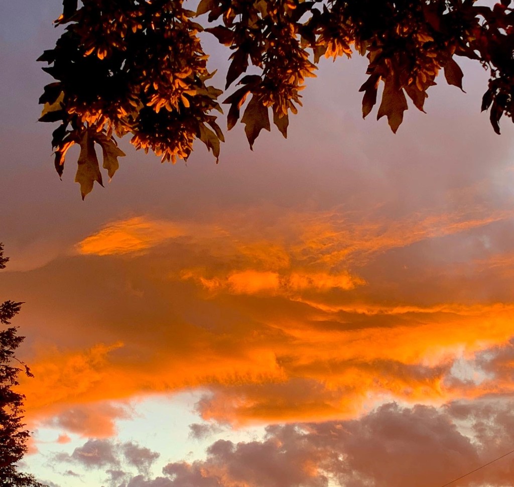 These buds have been poised for weeks and then, as if responding to the Conductor’s uplifted arms, readying for a momentous downstroke, they let go of all their pent up potential~ exploding with harmonious energy enough to carry them all the way to autumn when they fly, gone with the wind.