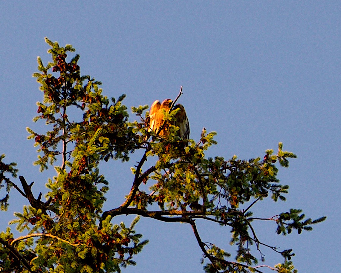 For the past eight days of August on our farm, we have heard loud cries from the sky, starting soon after sunrise and becoming more frequent before sunset. Every few minutes from one high tree top or another, we hear a shrill “kree” which sometimes sounds angry, too often mournful and full of pain.