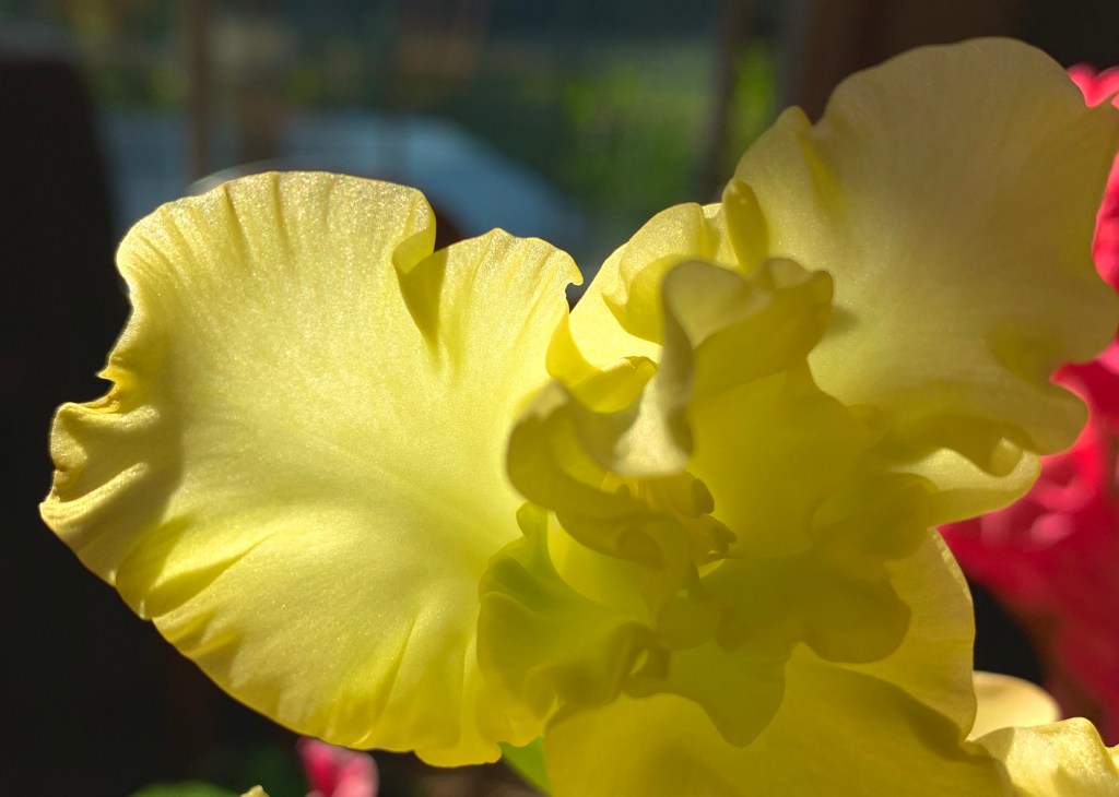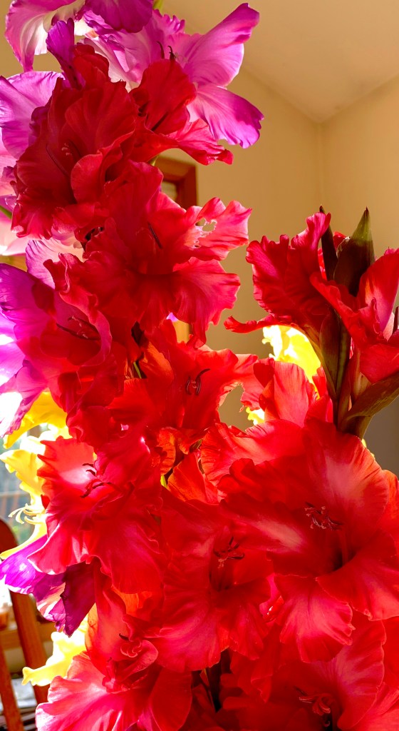We have four windchimes of varying size and tuning hanging from our front porch and back yard, each with its own song and personality. Depending on where we are in the house, we hear different harmony and pitch. The largest sounds like church bells, deep and resonant, another is a pentatonix of harmony, one plays the notes of “Amazing Grace” and the last is just random tintinnabulation.