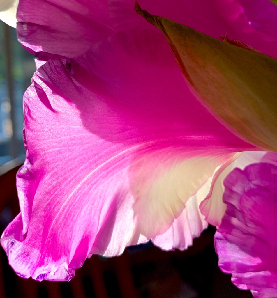 In certain seasons, our area can get strong northeast or southerly winds that blow over 50 mph. In that case, we take the windchimes down temporarily – the battering clatter and clanging becomes more unsettling than the storm itself. Once the winds die down again, it is too quiet – the silence reminds me to replace the chimes on their hooks.