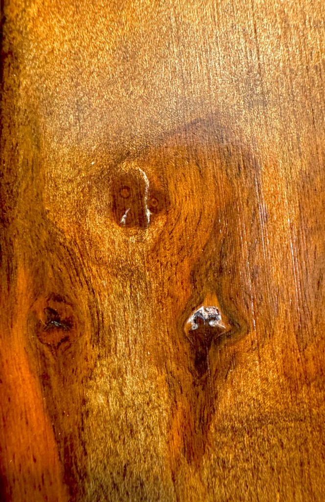 I can easily lose myself in the wood and wondering about its origins, whether it is as I sit at a window composing, or whether I’m outside walking among the trees which are merely potential writing desks in the raw.