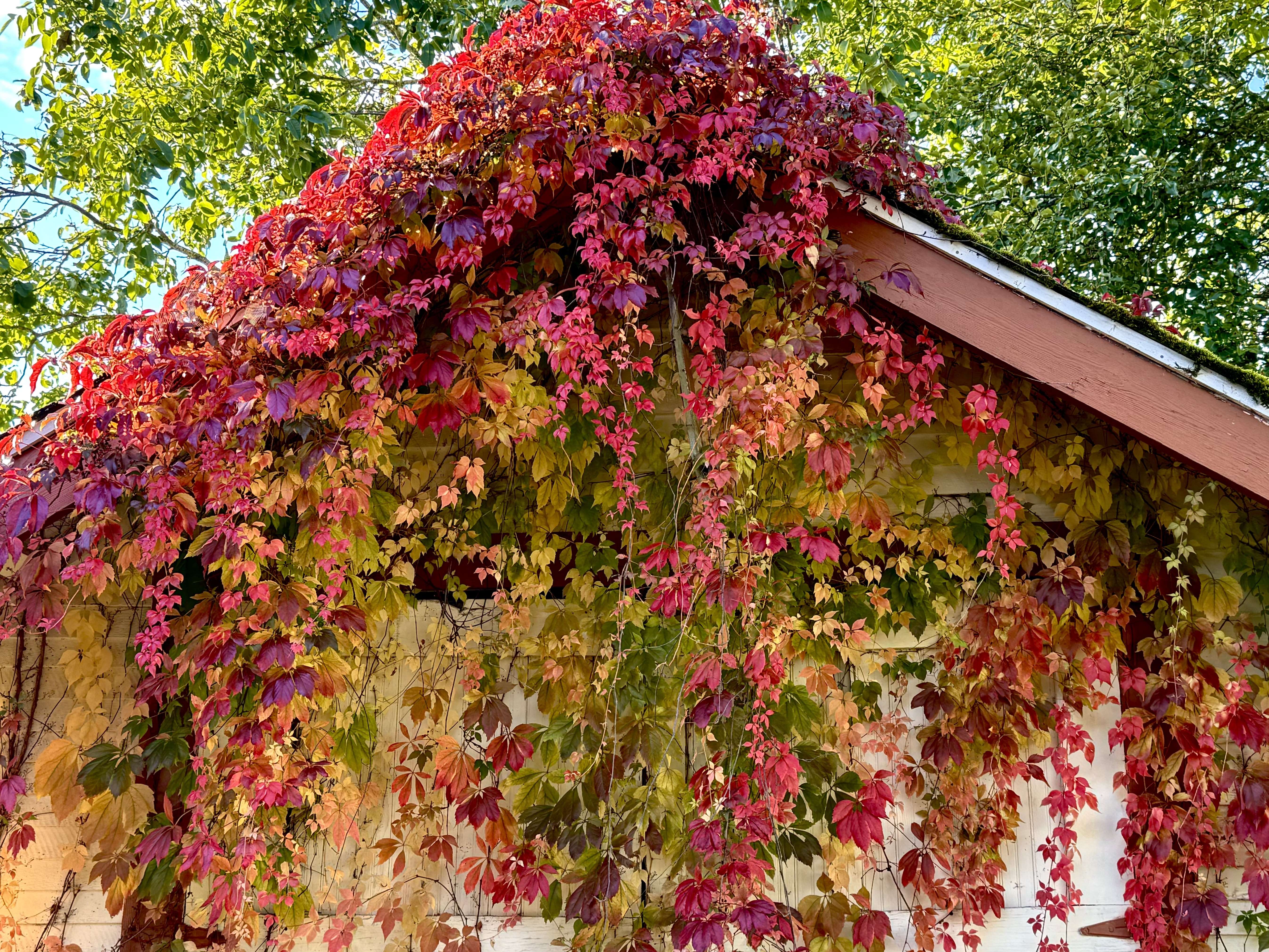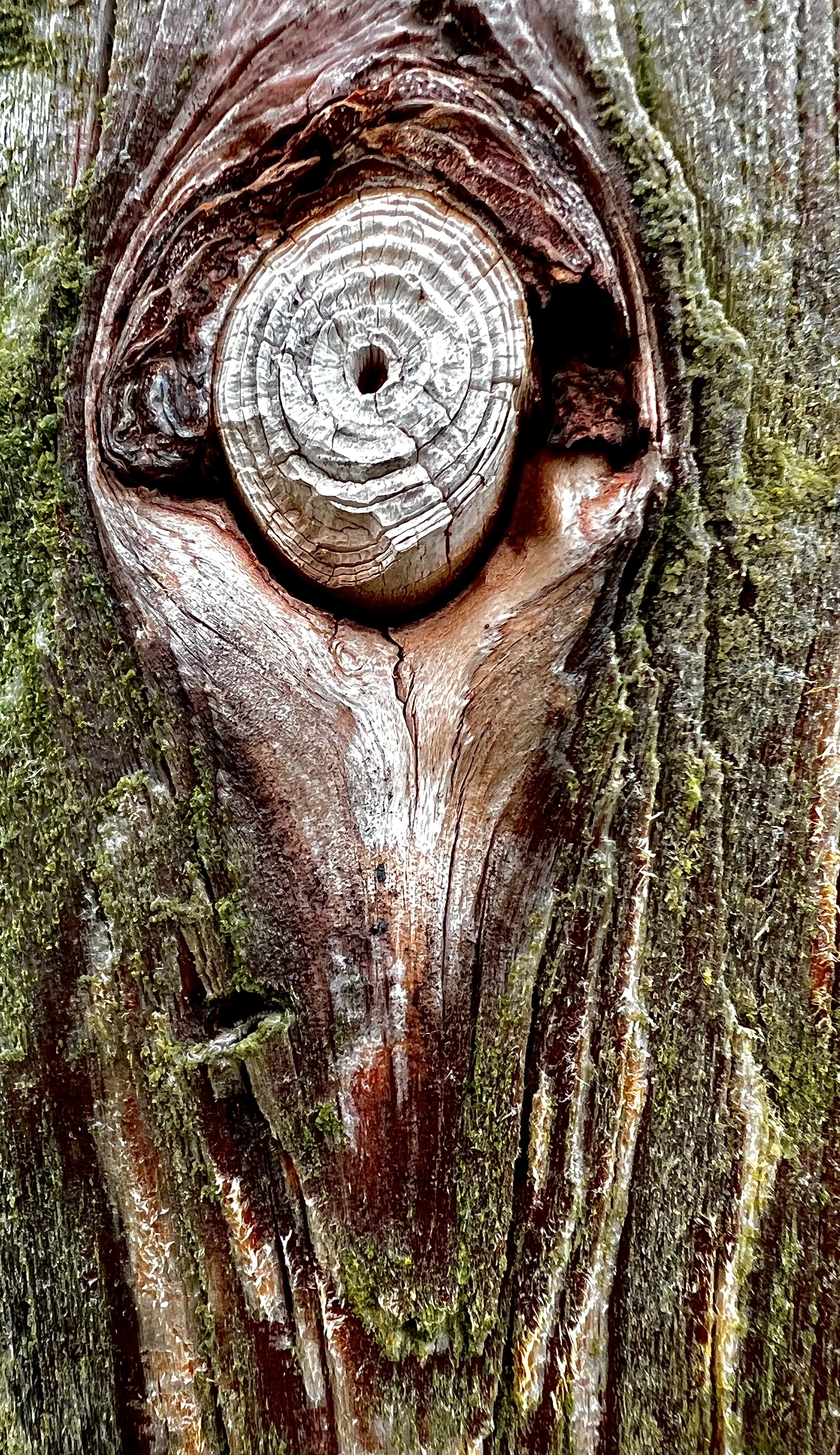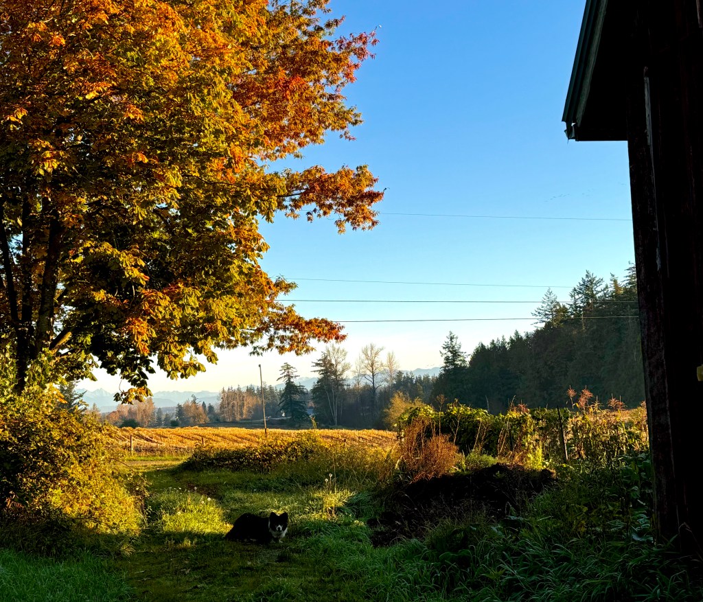 I’ve lived in the Pacific Northwest for nearly 70 years – this farm for 30 years. The grandeur of the snow-capped mountains to the north and east and the peaceful shore to the west overwhelms everything in between. Autumn after autumn, I’ve walked past these antique apple trees, but had never stopped to really look at the landscape growing on their bare shoulders and arms. There is a whole other ecosystem on each tree, a fairy land of earth bound dryland seaweed, luxuriant in the fall rains, colorful in the winter, hidden behind leaves and fruit in the hot summer. I had never really noticed the varied color and texture all around me.