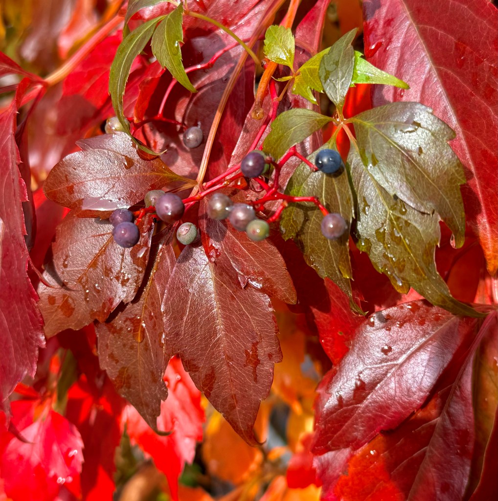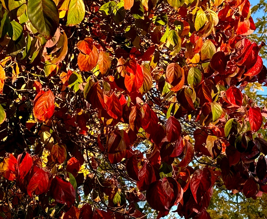 Maybe night is about to come calling, but right now the sun is still high in the sky. It’s half-past October, the woods are on fire, blue skies stretch all the way to heaven. Of course, we know that winter is coming, its thin winding sheets and its hard narrow bed. But right now, the season’s fermented to fullness, so slip into something light, like your skeleton; while these old bones are still working, my darling, let’s dance. ~Barbara Crooker, “Reel” from The Book of Kells