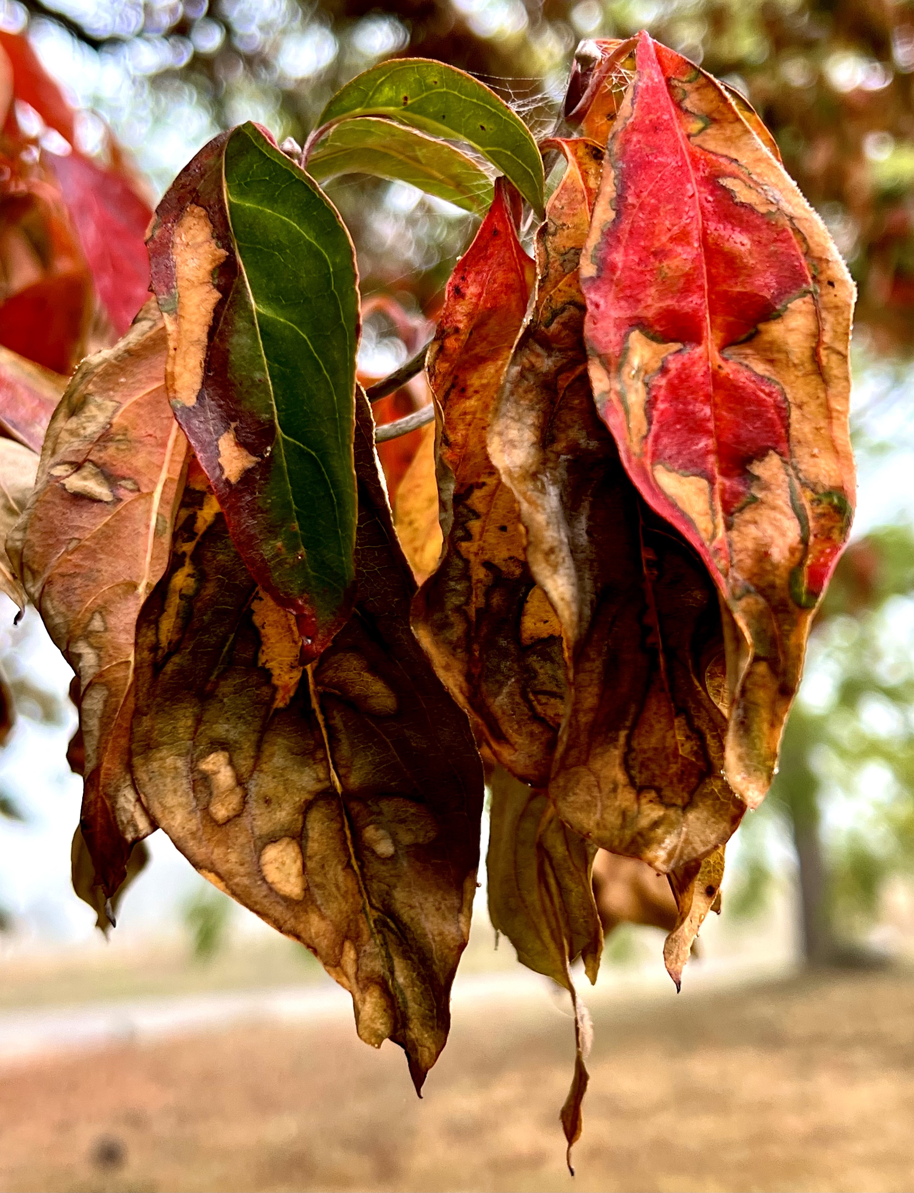 I want it all to be less brief, leave the leaves attached like a fitted mosaic rather than randomly falling away.
